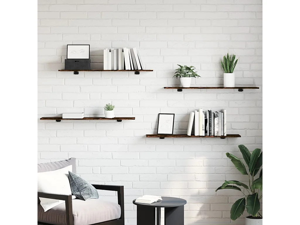 Lot de 4 Étagères murales chêne fumé 40x20x1,5cm bois d'ingénierie FR56145