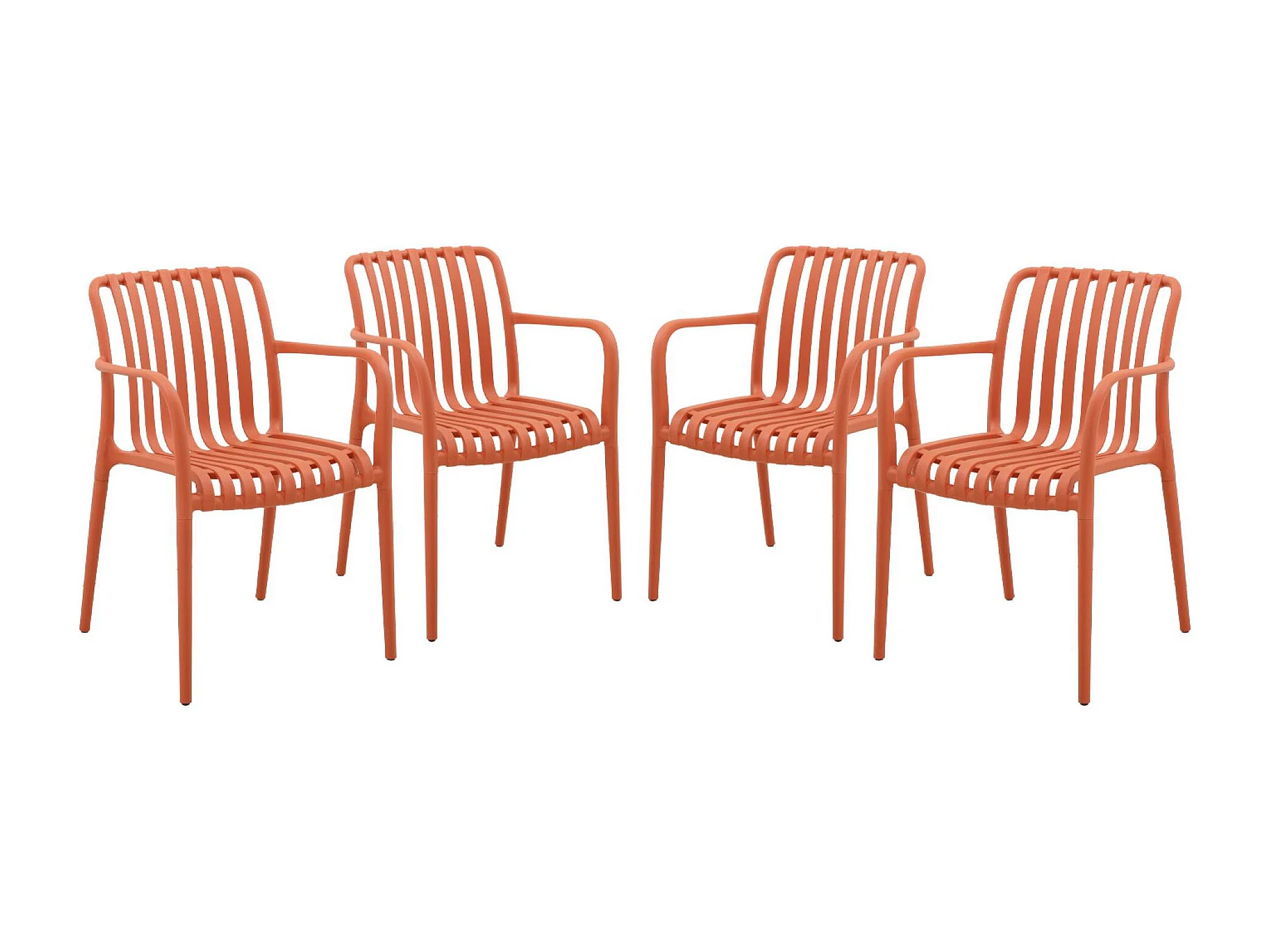 Lot de 4 fauteuils de jardin en plastique terracotta. empilables. design linéaire
