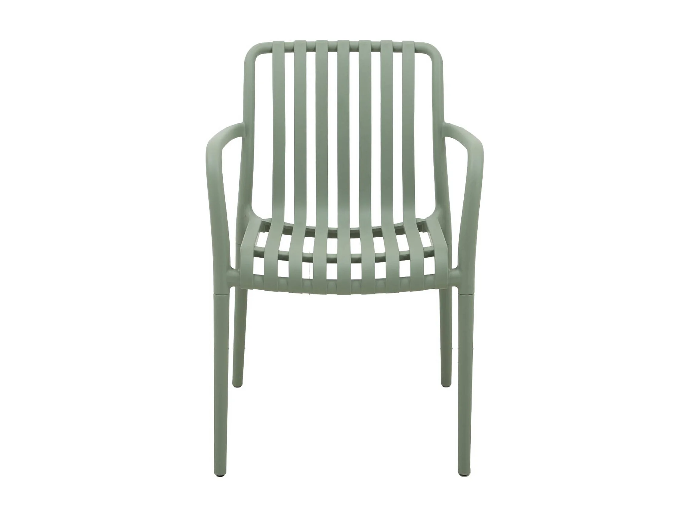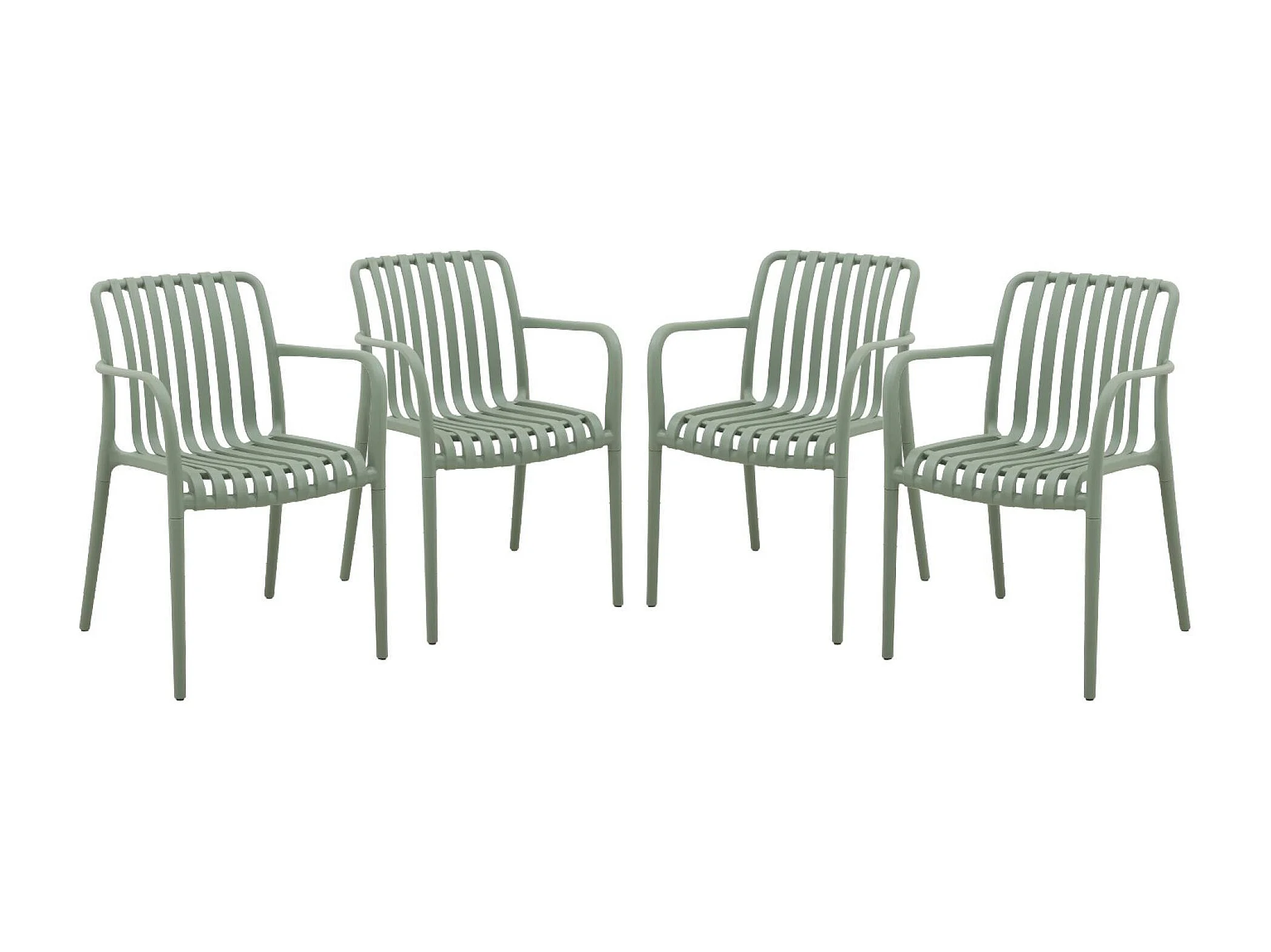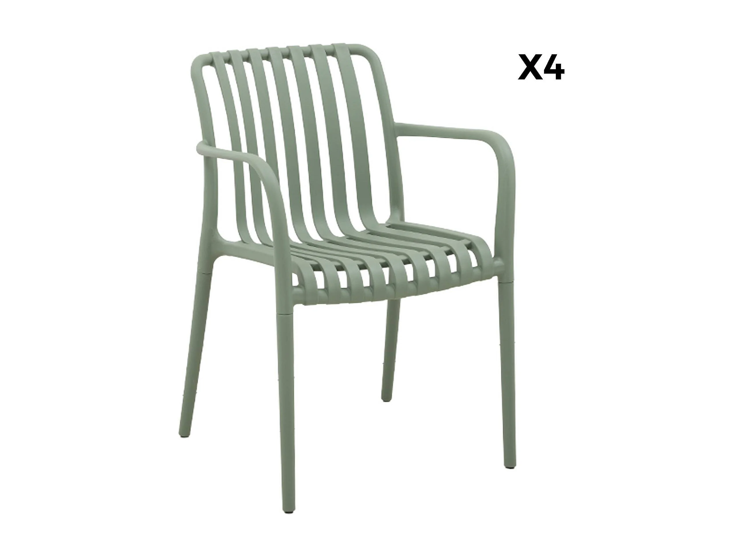 Lot de 4 fauteuils de jardin en plastique vert de gris. empilables. design linéaire