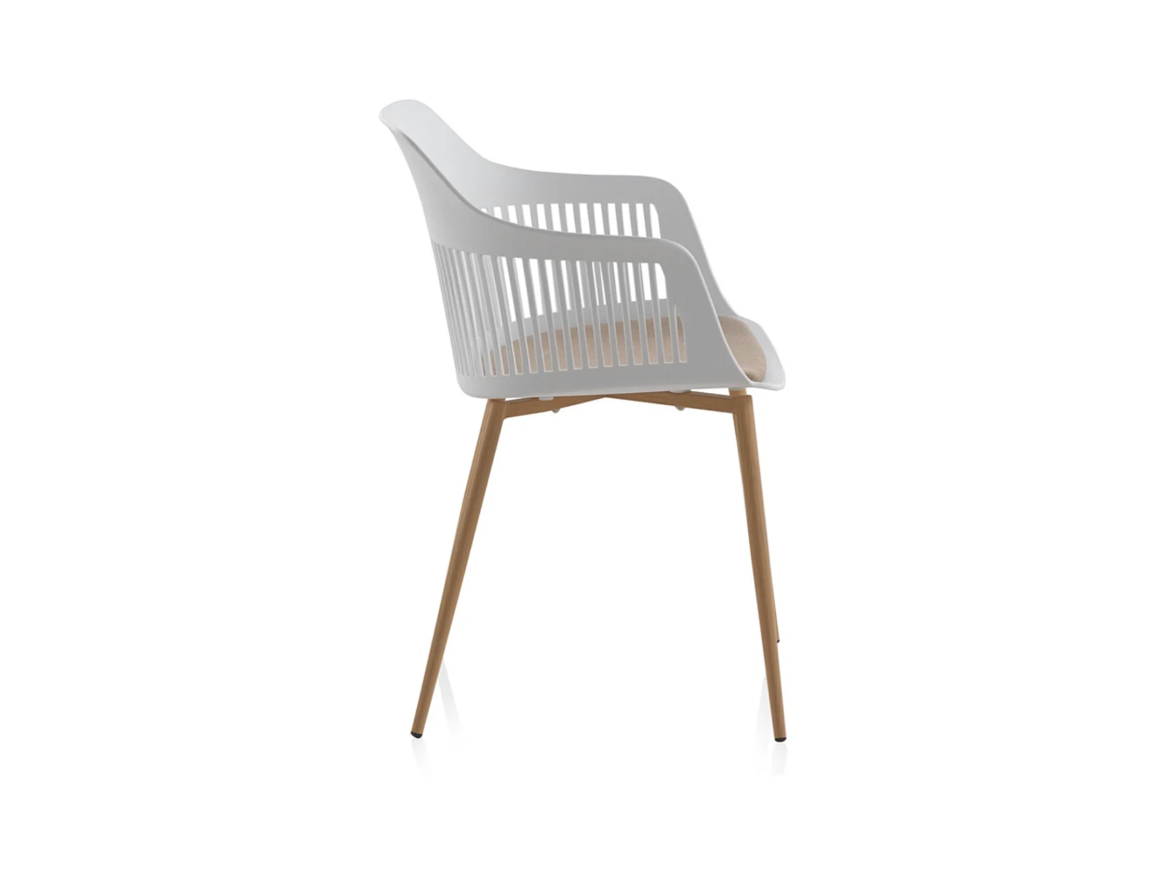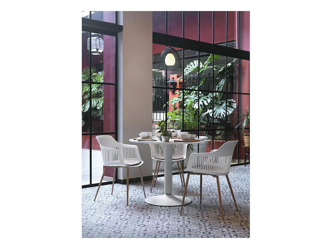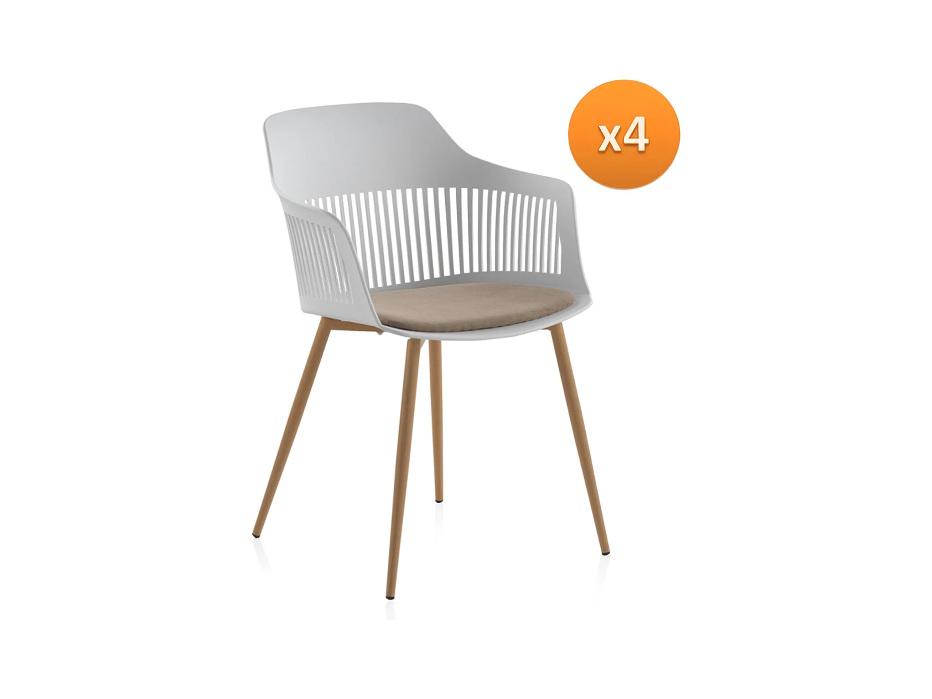 Lot de 4 fauteuils en polypropylène blanc avec assise tapissée