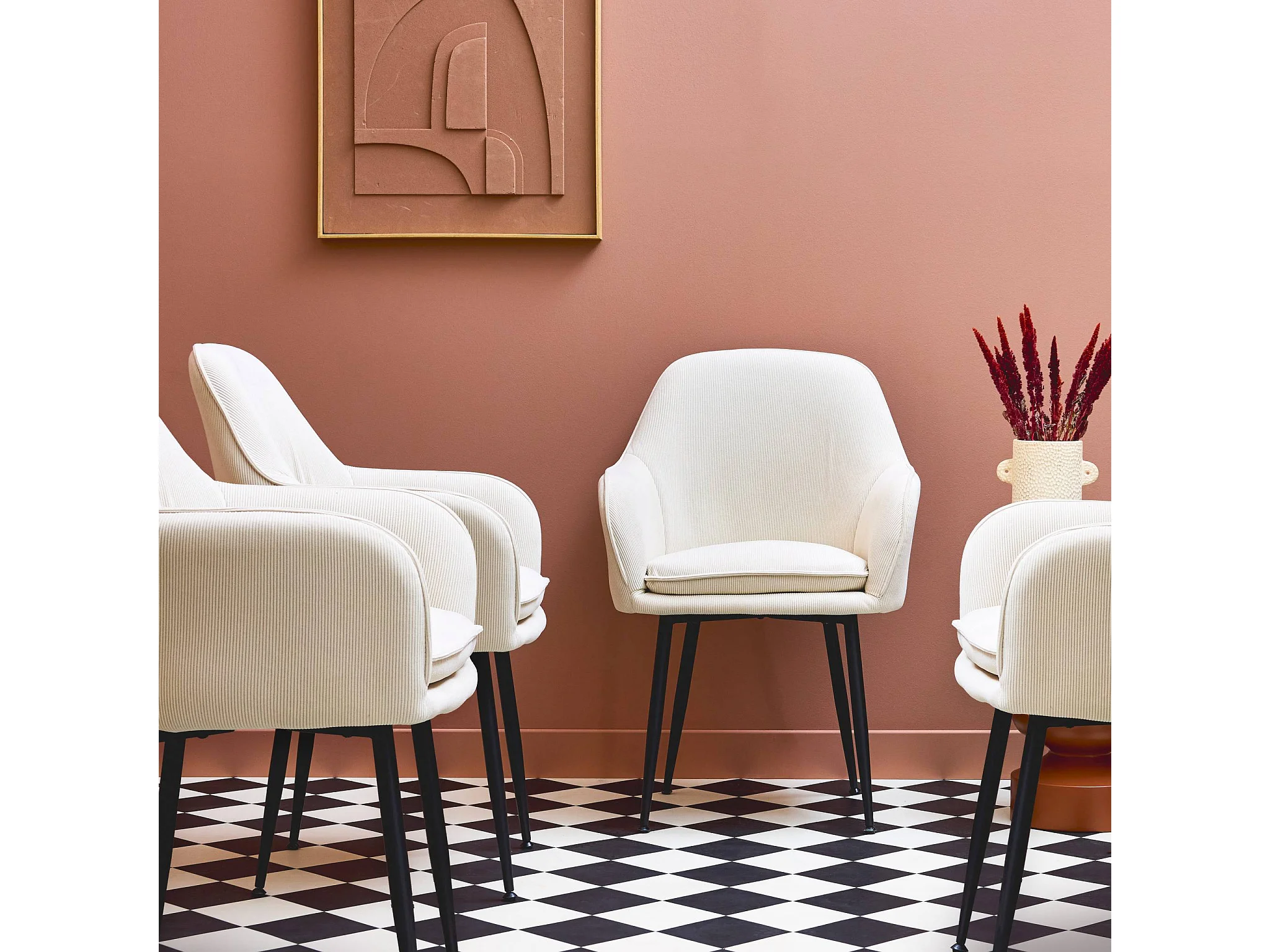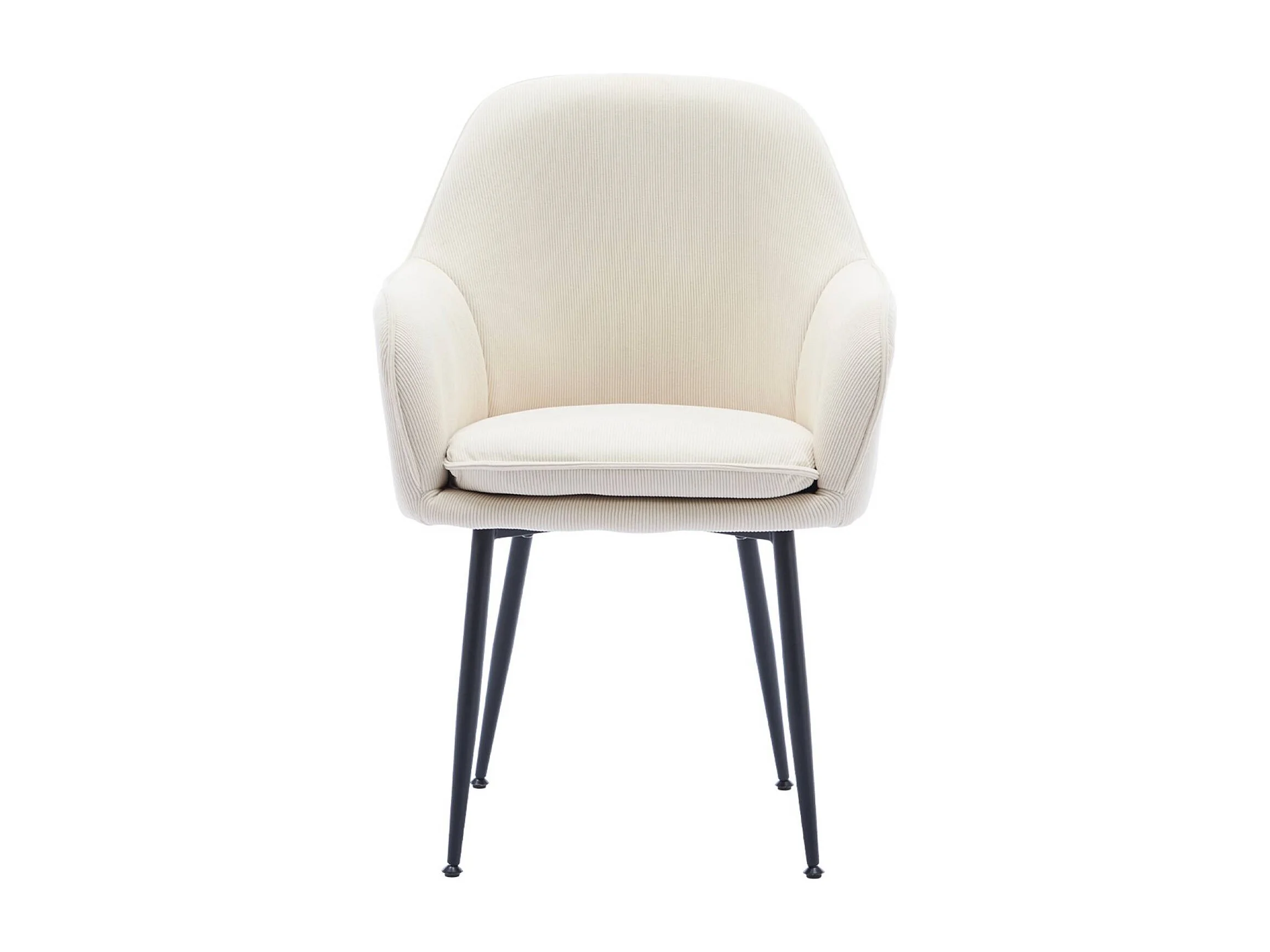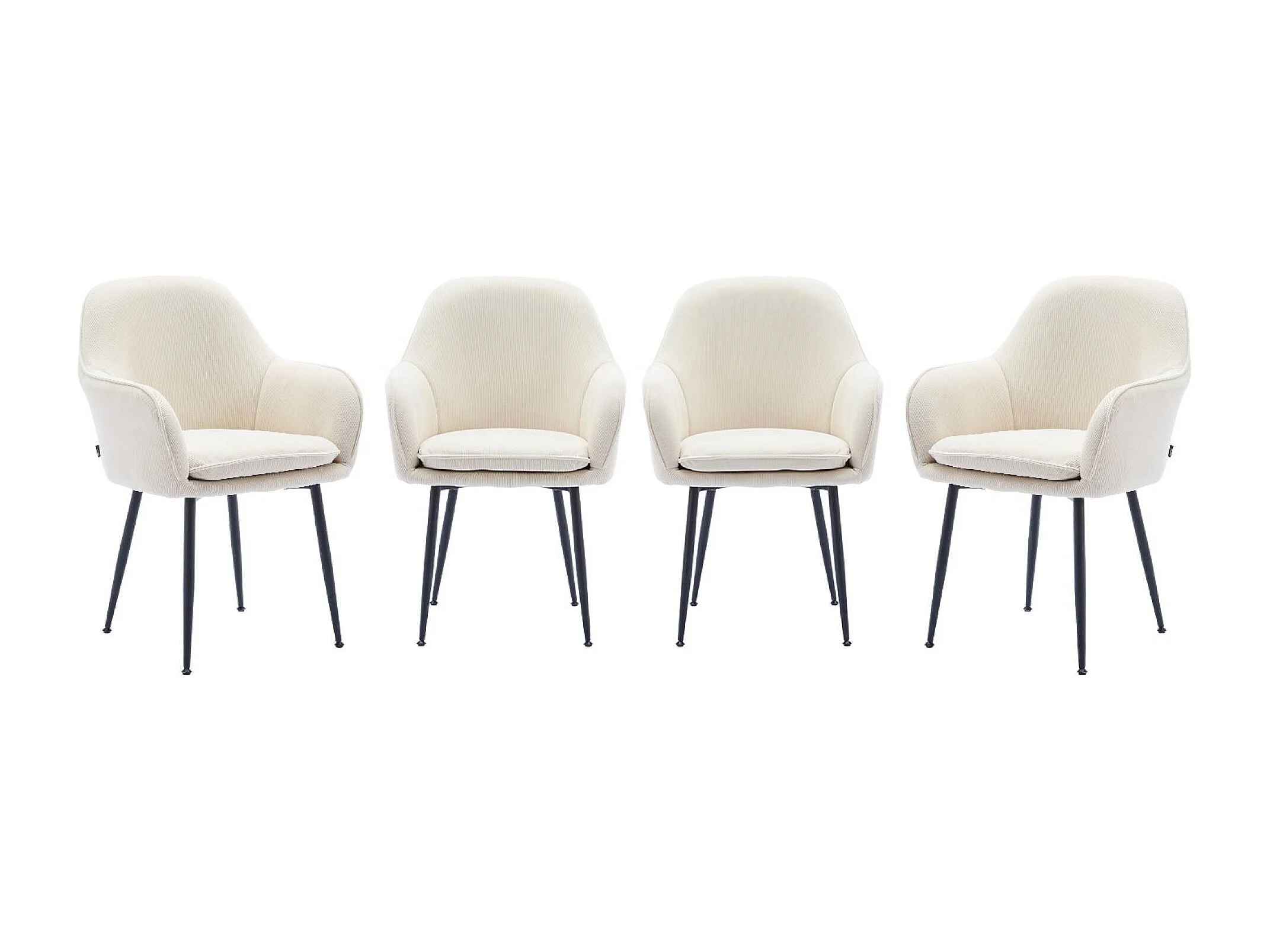 Lot de 4 fauteuils en velours côtelé blanc cassé et pieds en métal noir mat. L 57 x P 59 x H 84.5cm