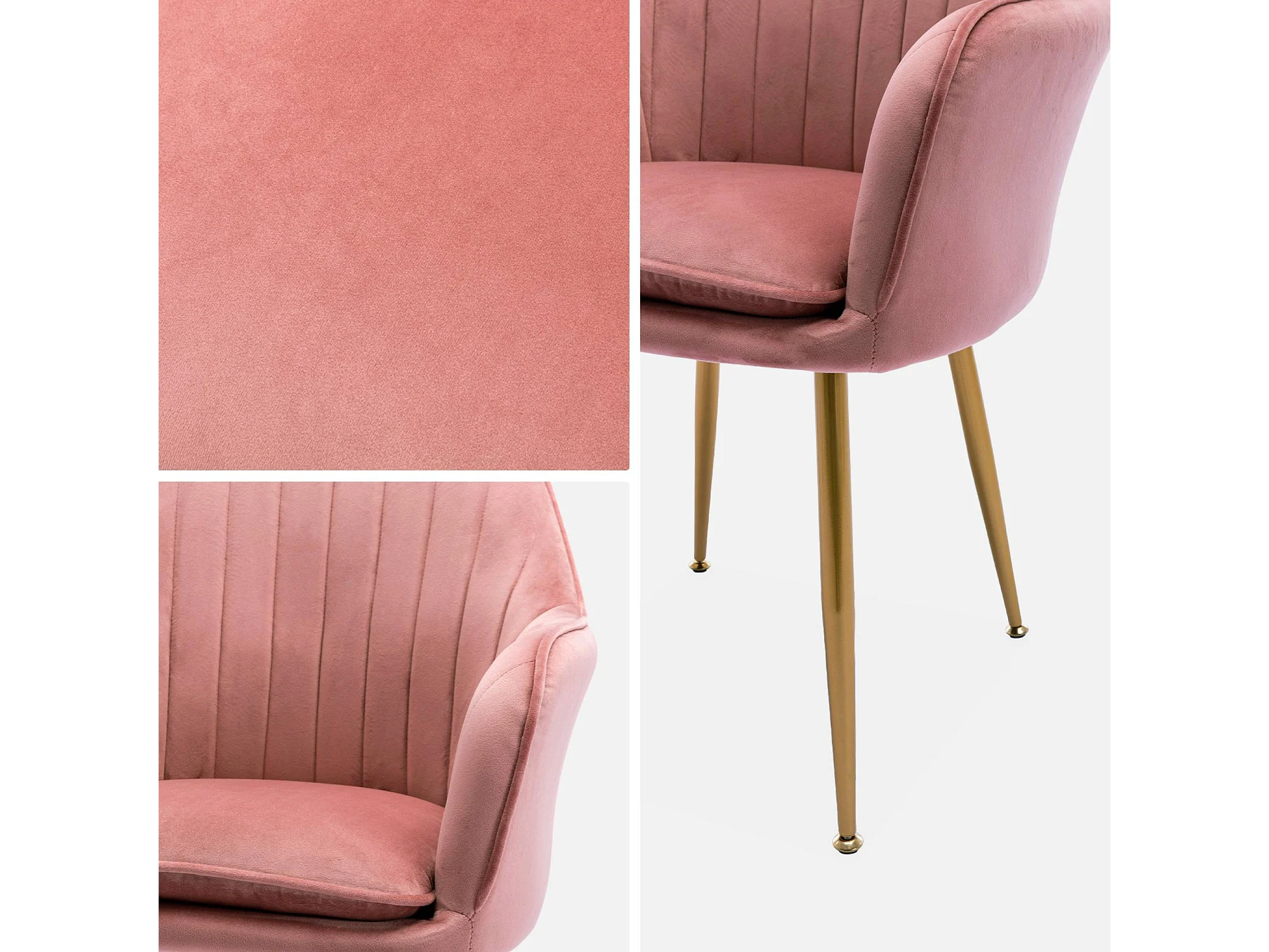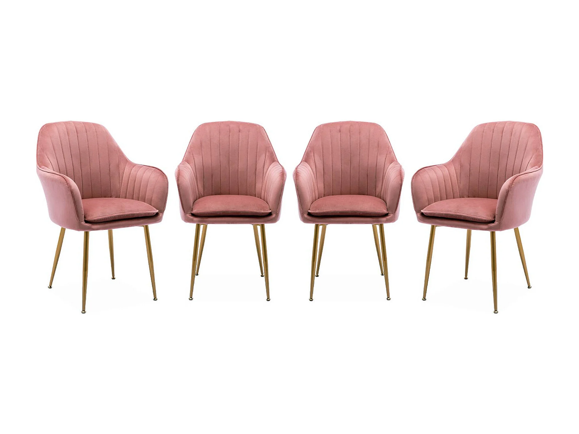 Lot de 4 fauteuils en velours vieux rose et pieds en métal noir. Shella L 57 x P 59 x H 84.5
