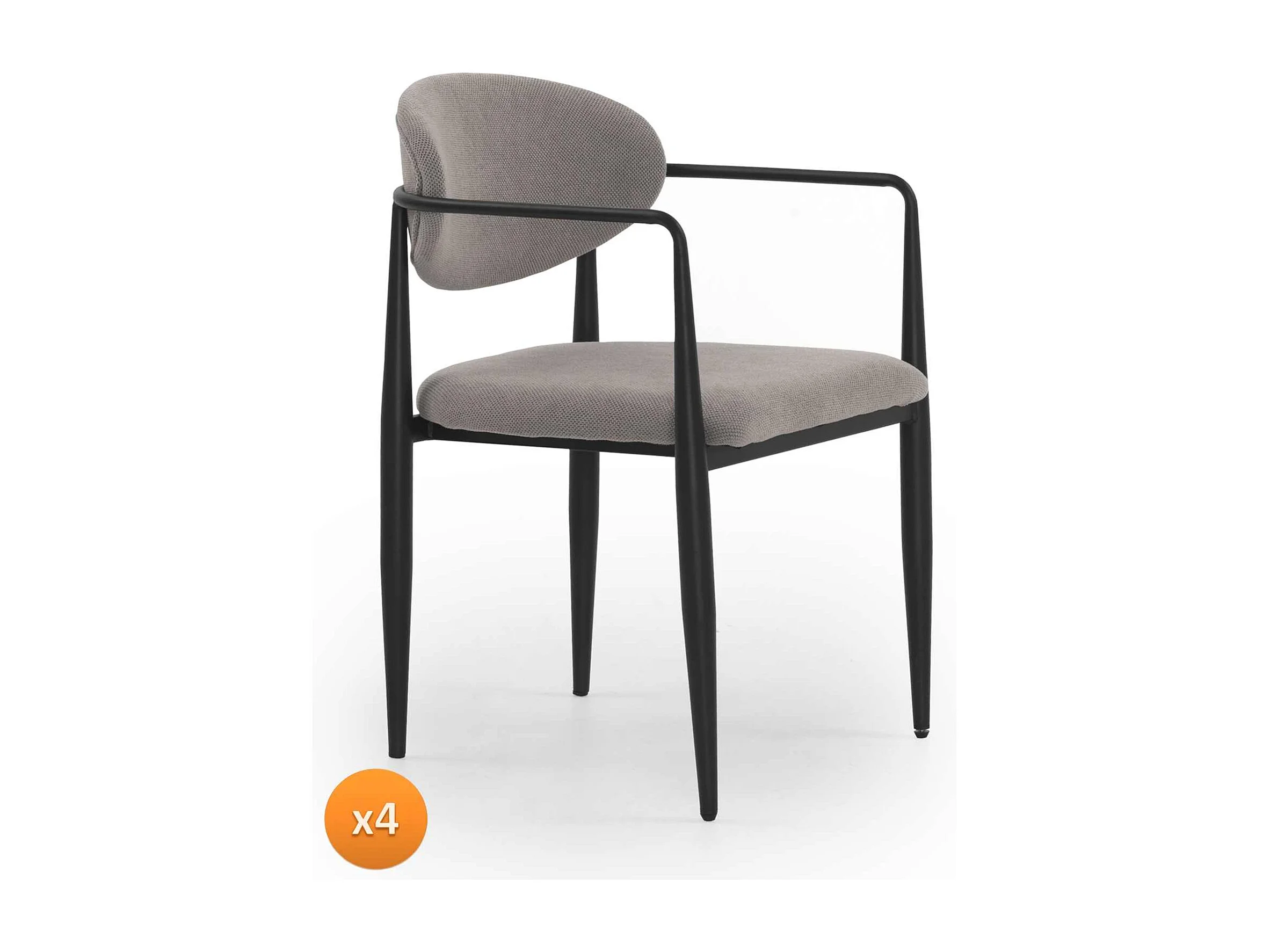 Lot de 4 fauteuils rembourrés en chenille parchemin avec pieds métalliques noirs