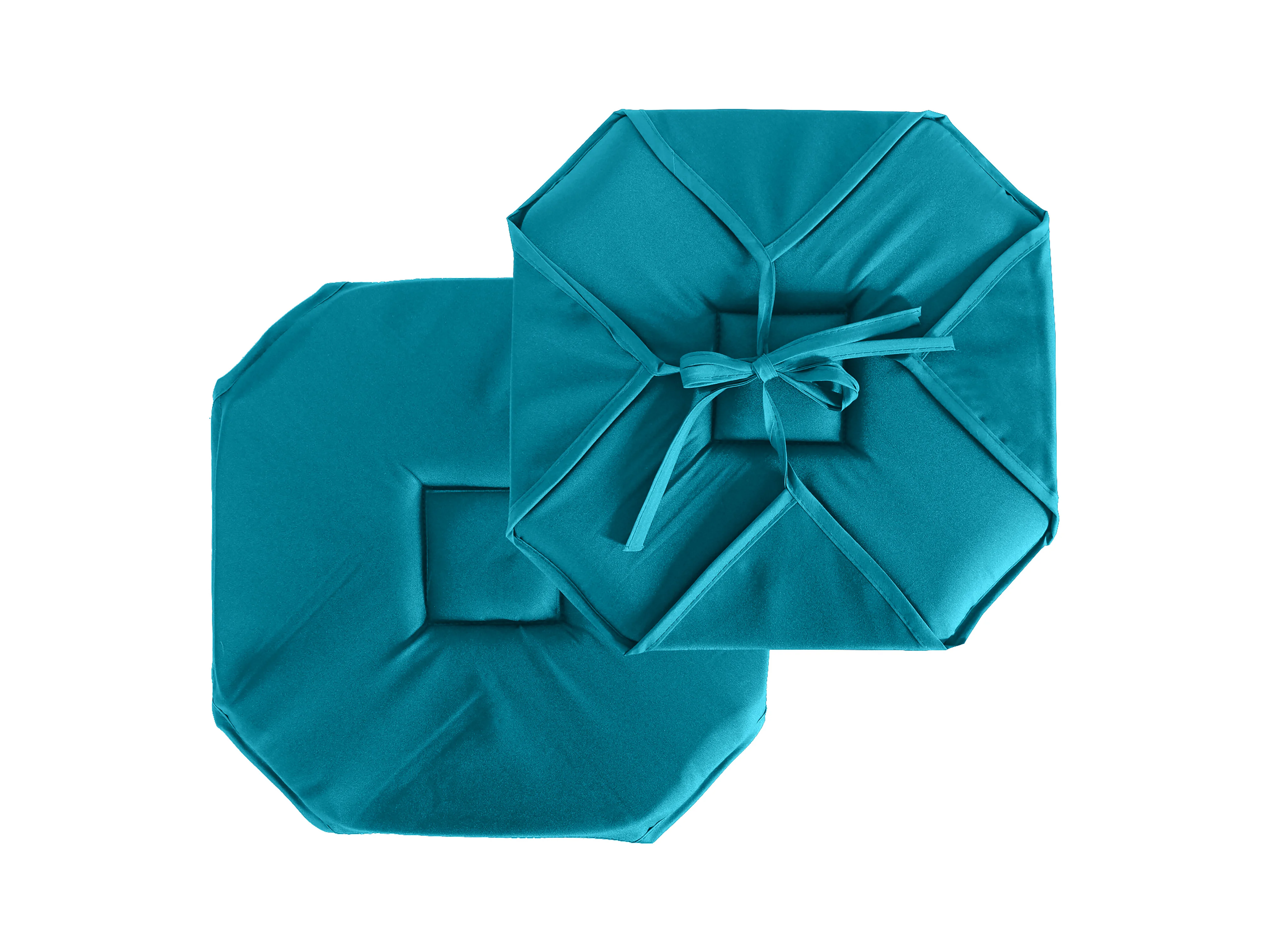 Lot de 4 galettes de chaise à rabat, 40x40 cm, bleu canard, nouettes, 100% polyester certifié oeko-tex, collection Basic
