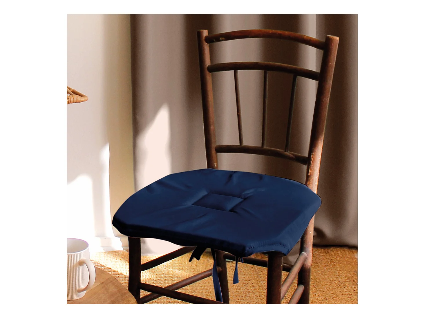 Lot de 4 galettes de chaise à rabat, 40x40 cm, bleu marine, nouettes, 100% polyester certifié oeko-tex, Collection Basic