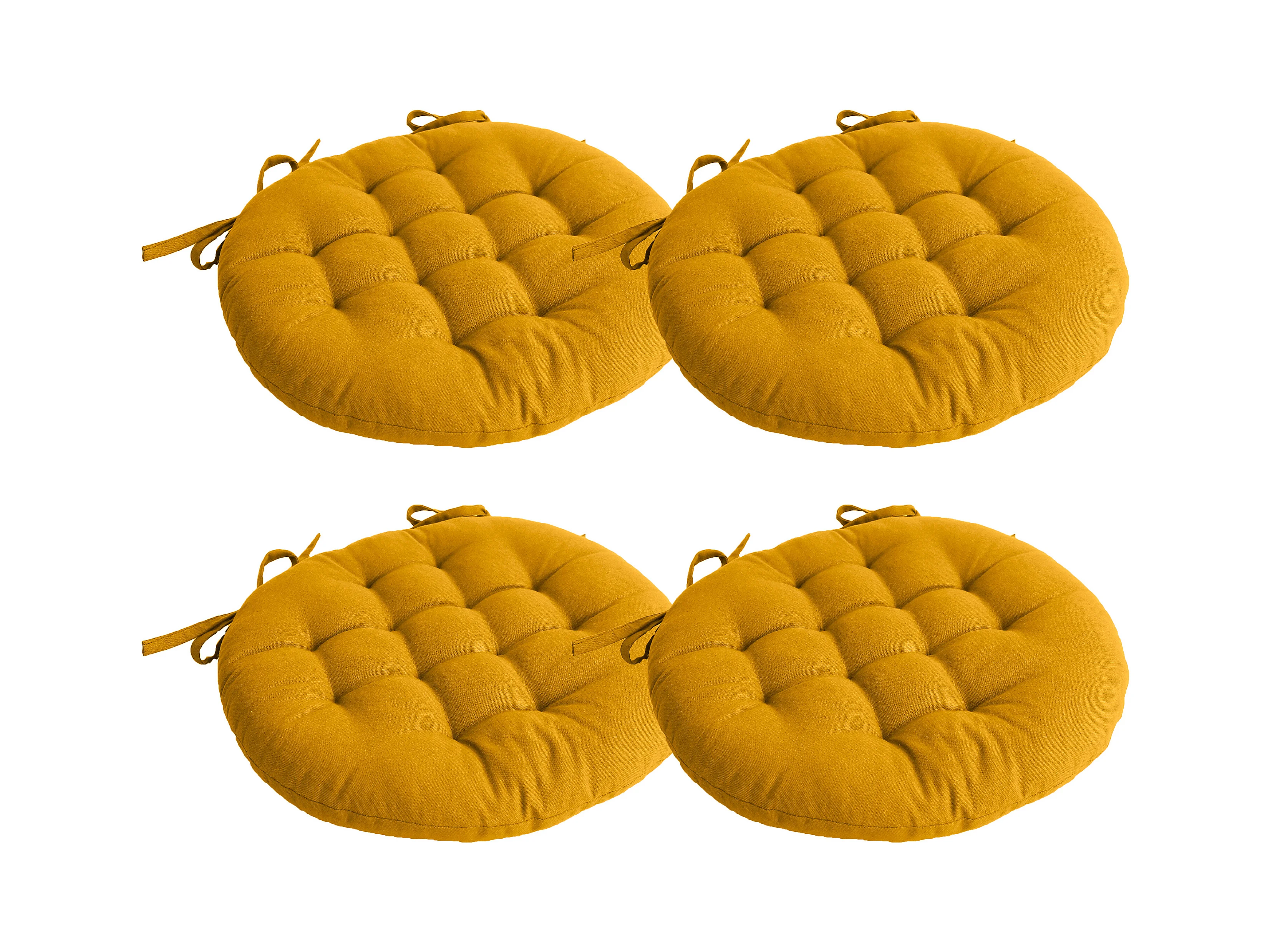 Lot de 4 galettes piquées, ronde 38cm, jaune moutarde, avec nouettes, 100% coton, collection Panama