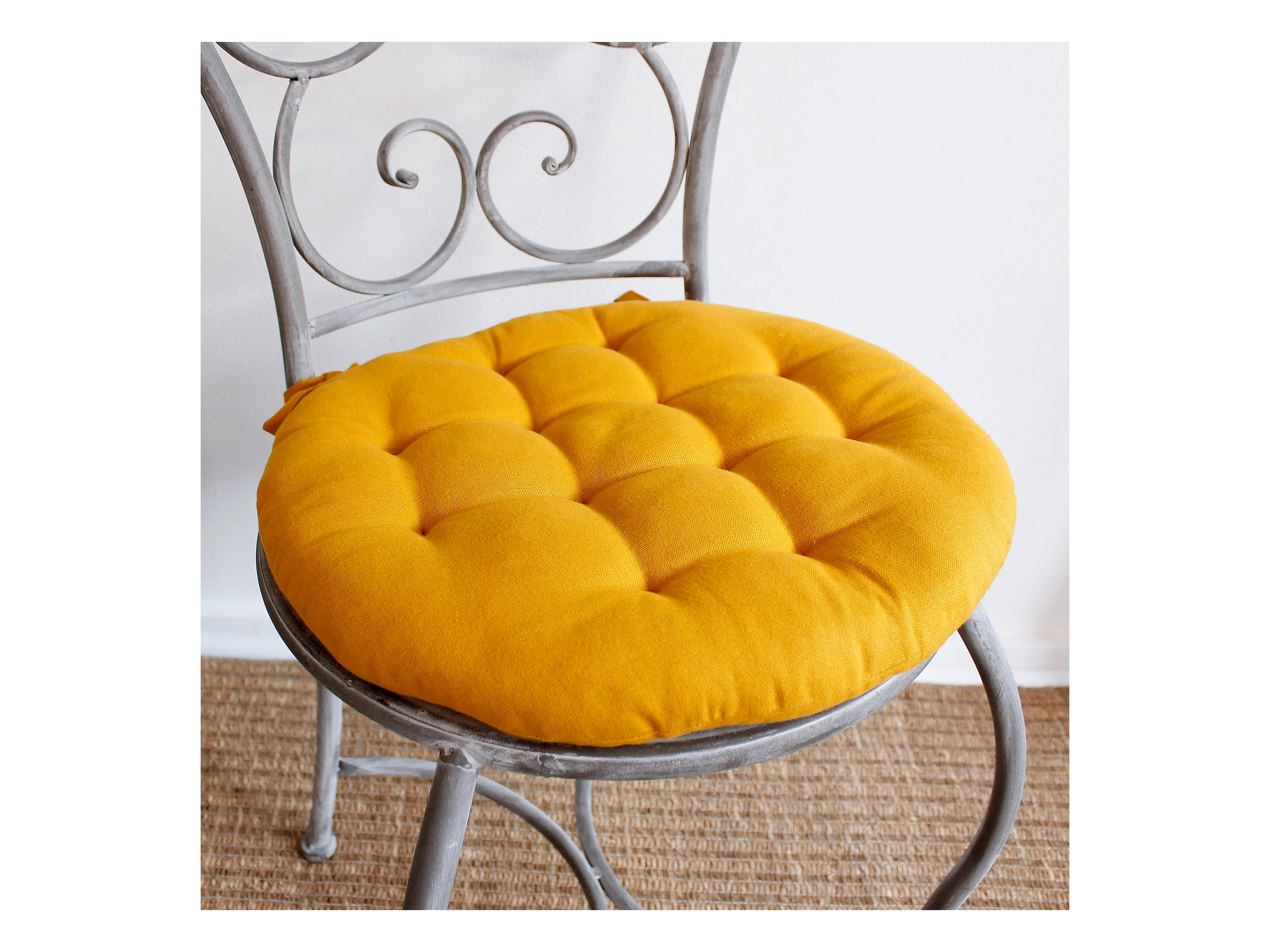 Galette de Chaise Piquée Uni "Panama" 38cm Moutarde