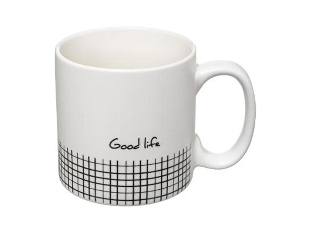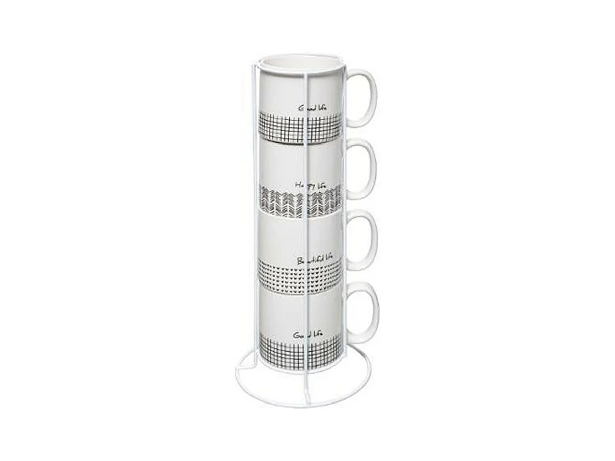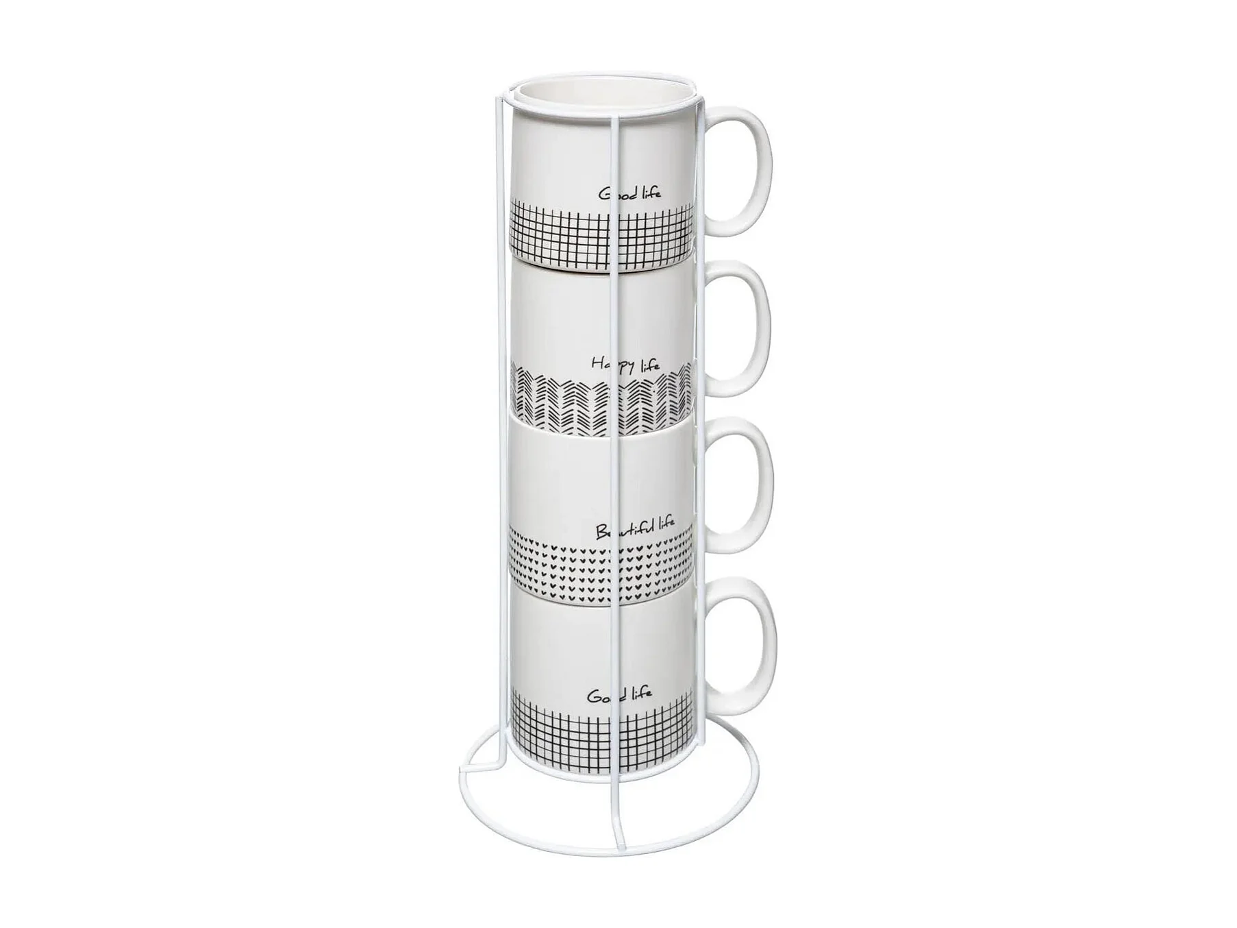 Lot de 4 Mugs & Rack Design "Life" 24cl Blanc