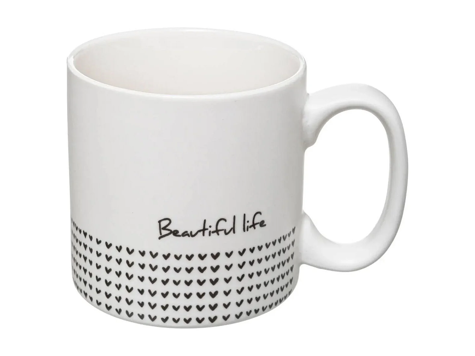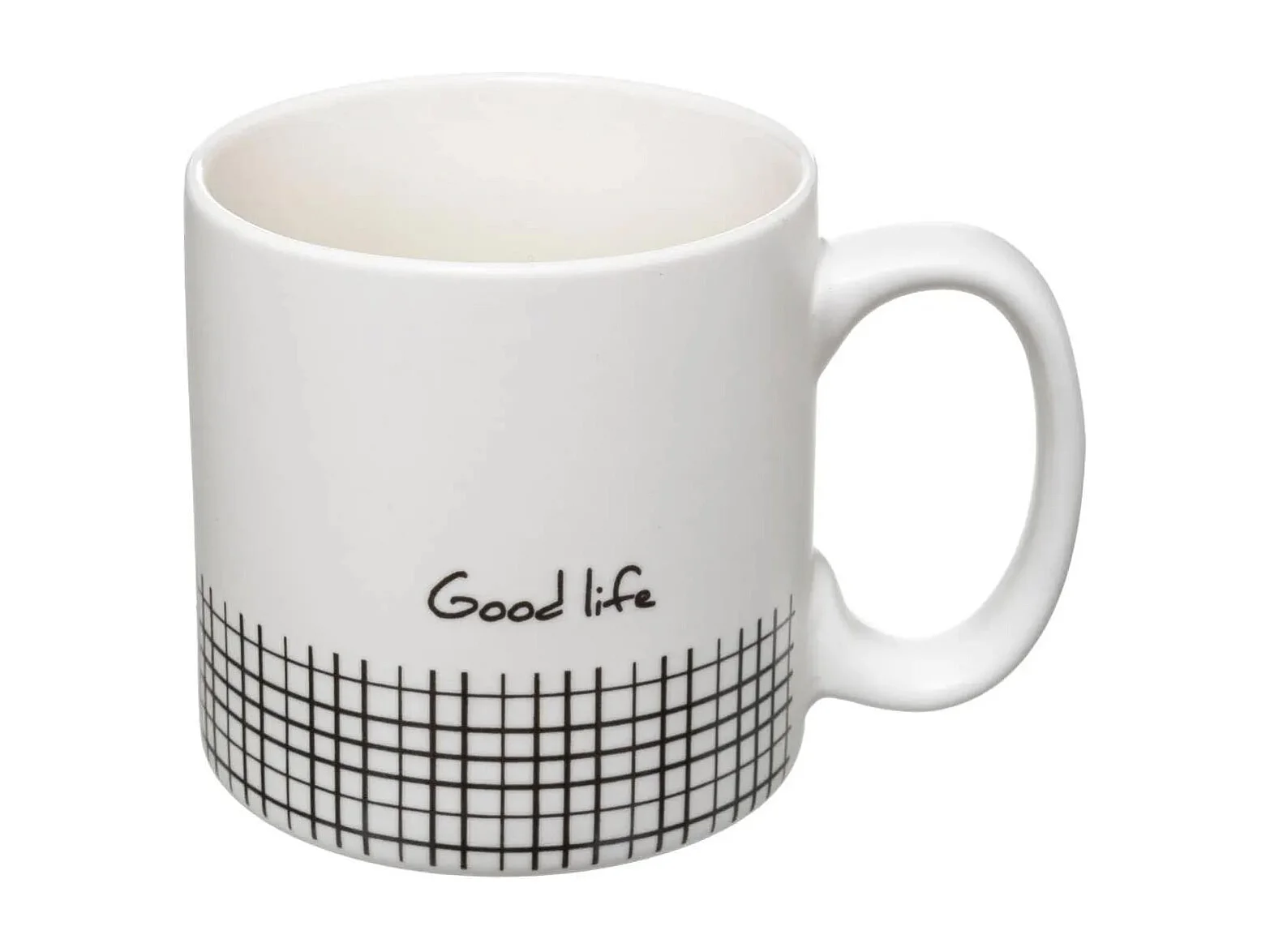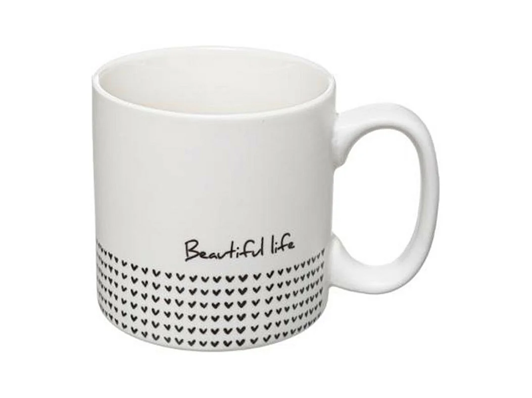 Lot de 4 Mugs & Rack Design "Life" 24cl Blanc