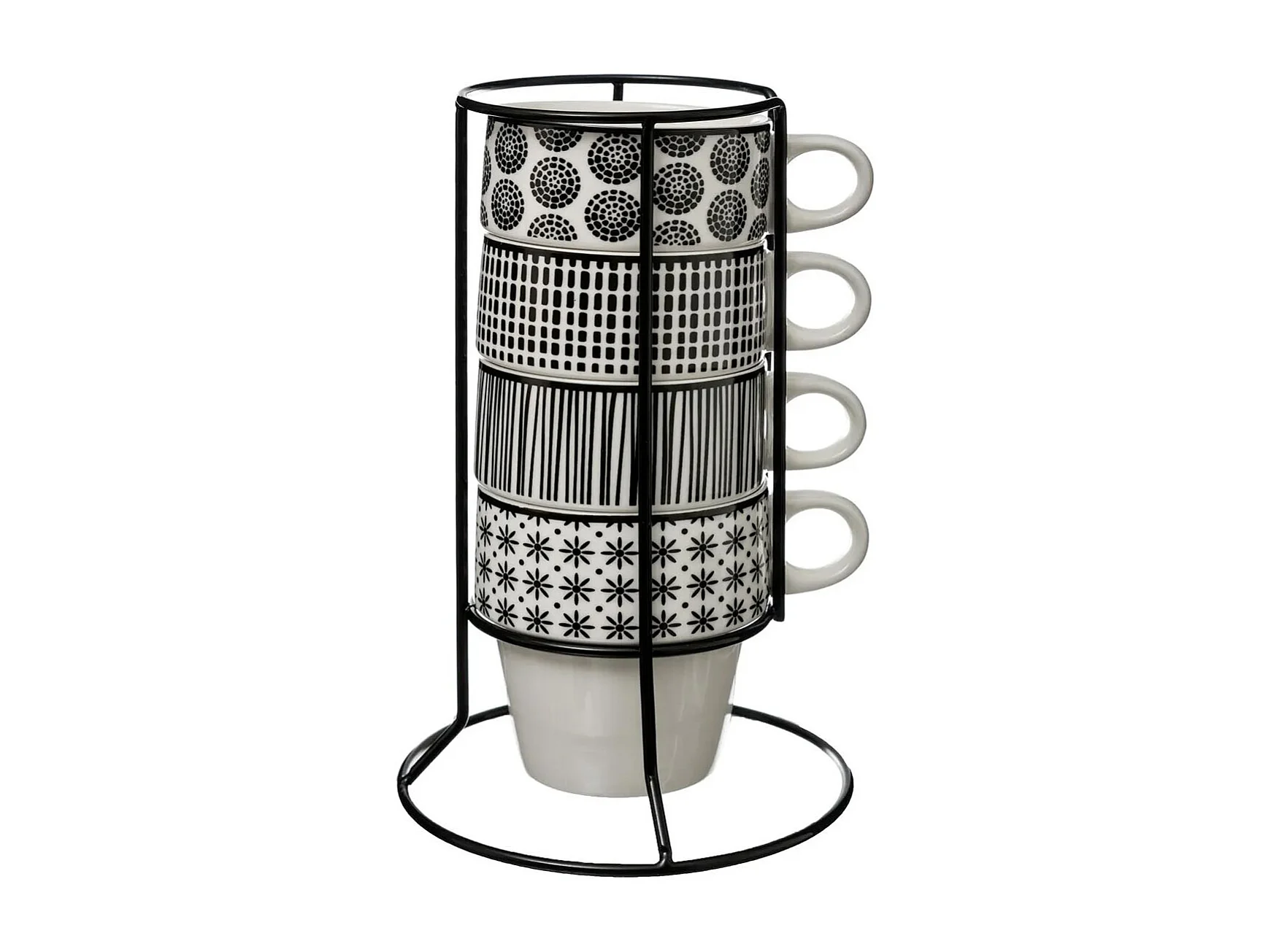 Lot de 4 Mugs sur Rack "Bohemia" 26cl Blanc
