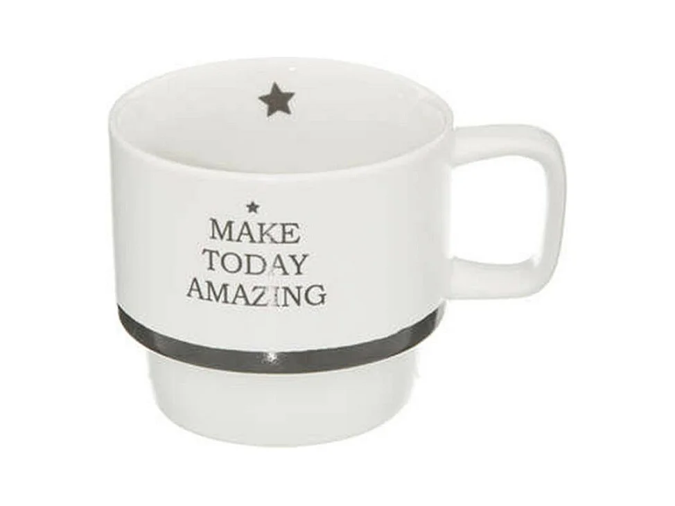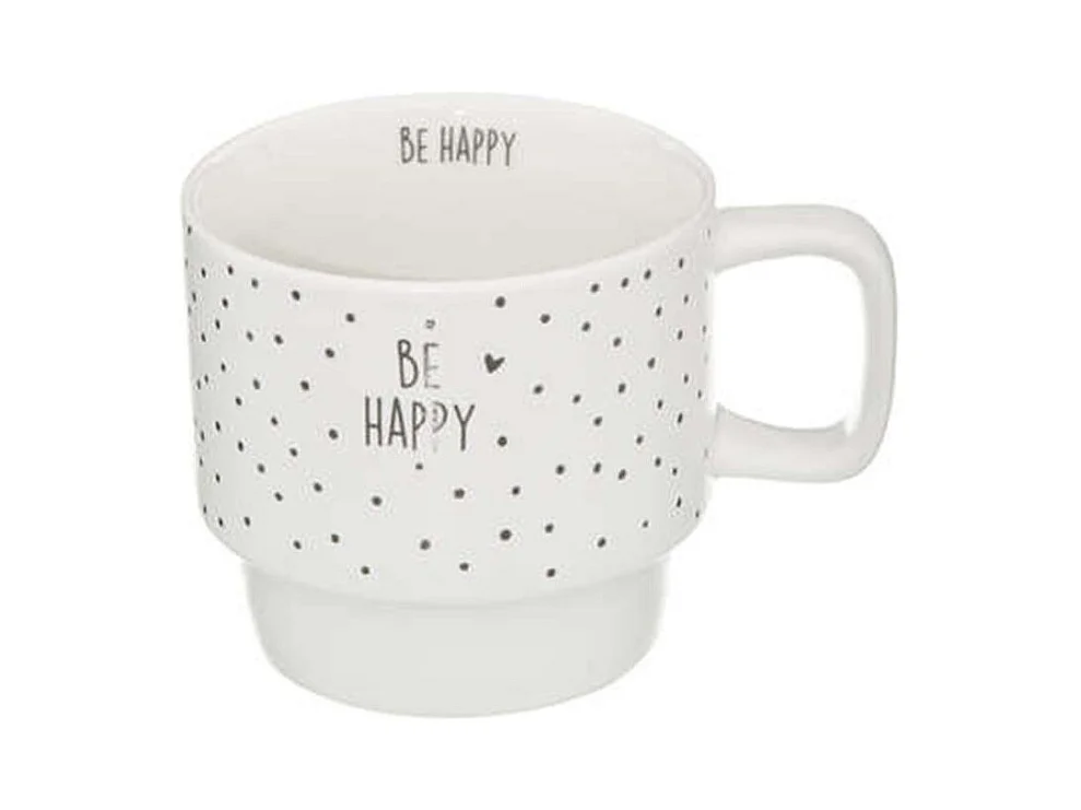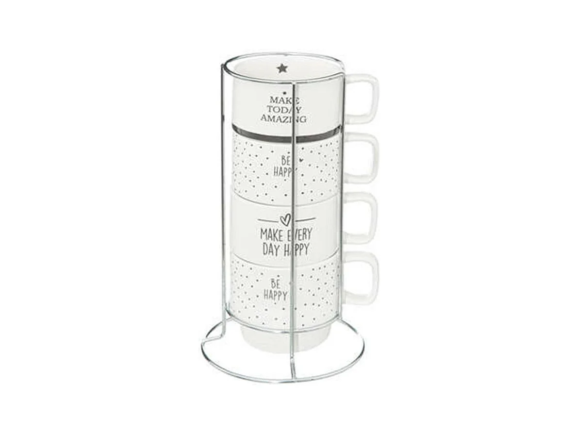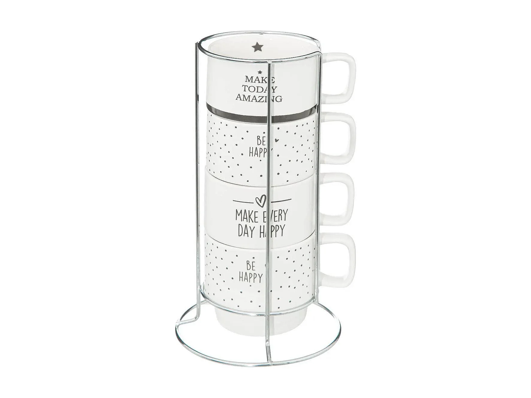 Lot de 4 Mugs sur Rack "Happy" 22cl Blanc