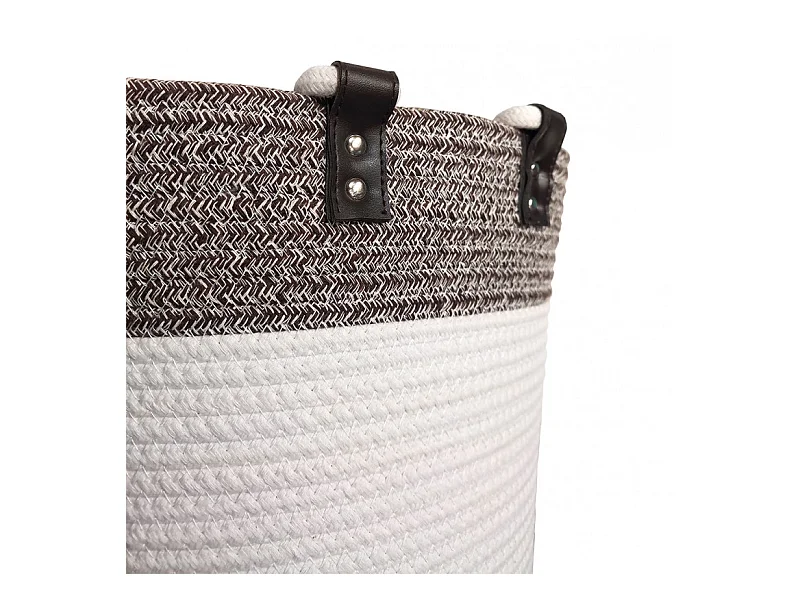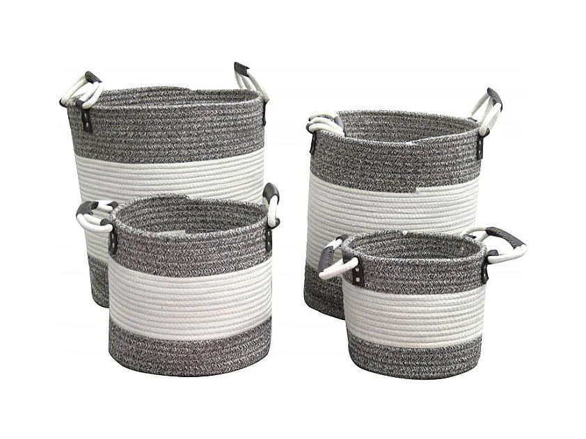 Lot de 4 paniers rond en corde de coton marron et blanc - COTON