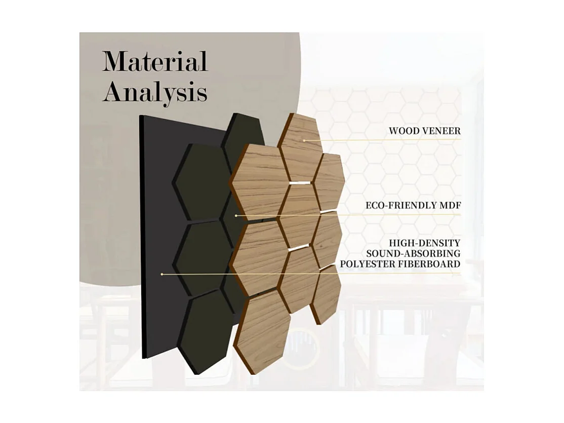 Lot de 4 panneaux Acoustiques Muraux Hexagonaux – Finition Teck