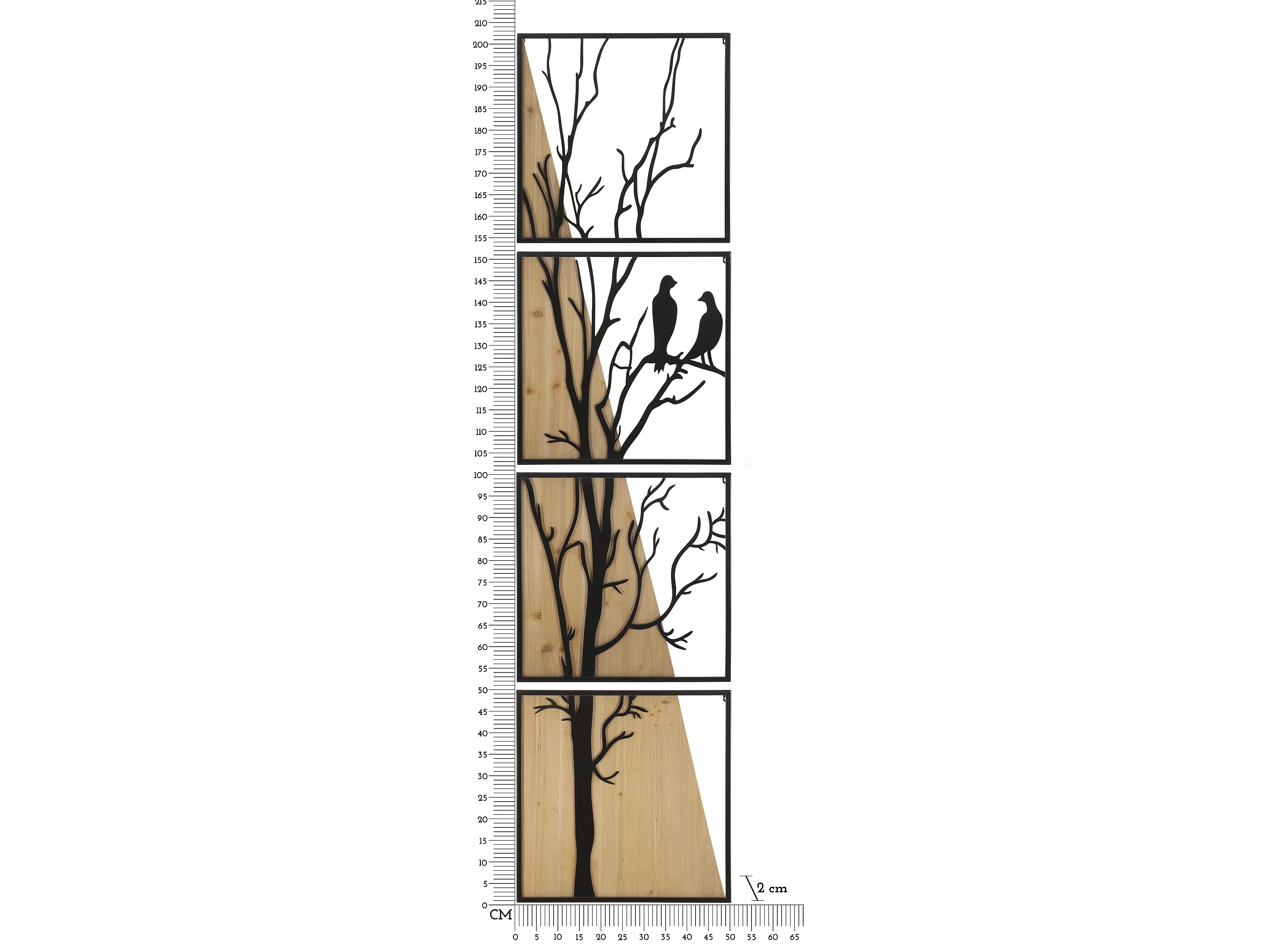 Lot de 4 Décorations Murales Encadrées "Arbre" 200cm Noir & Naturel