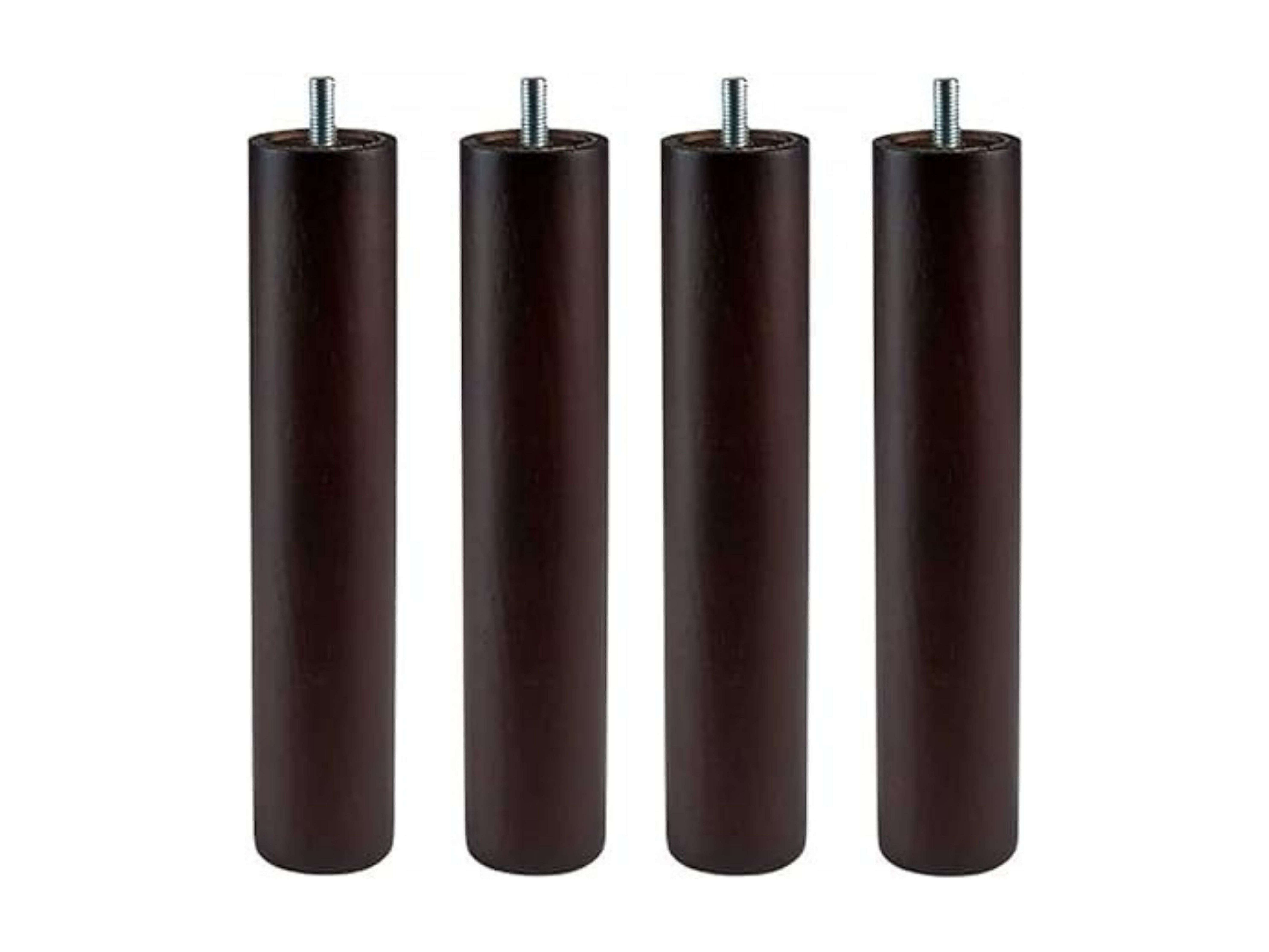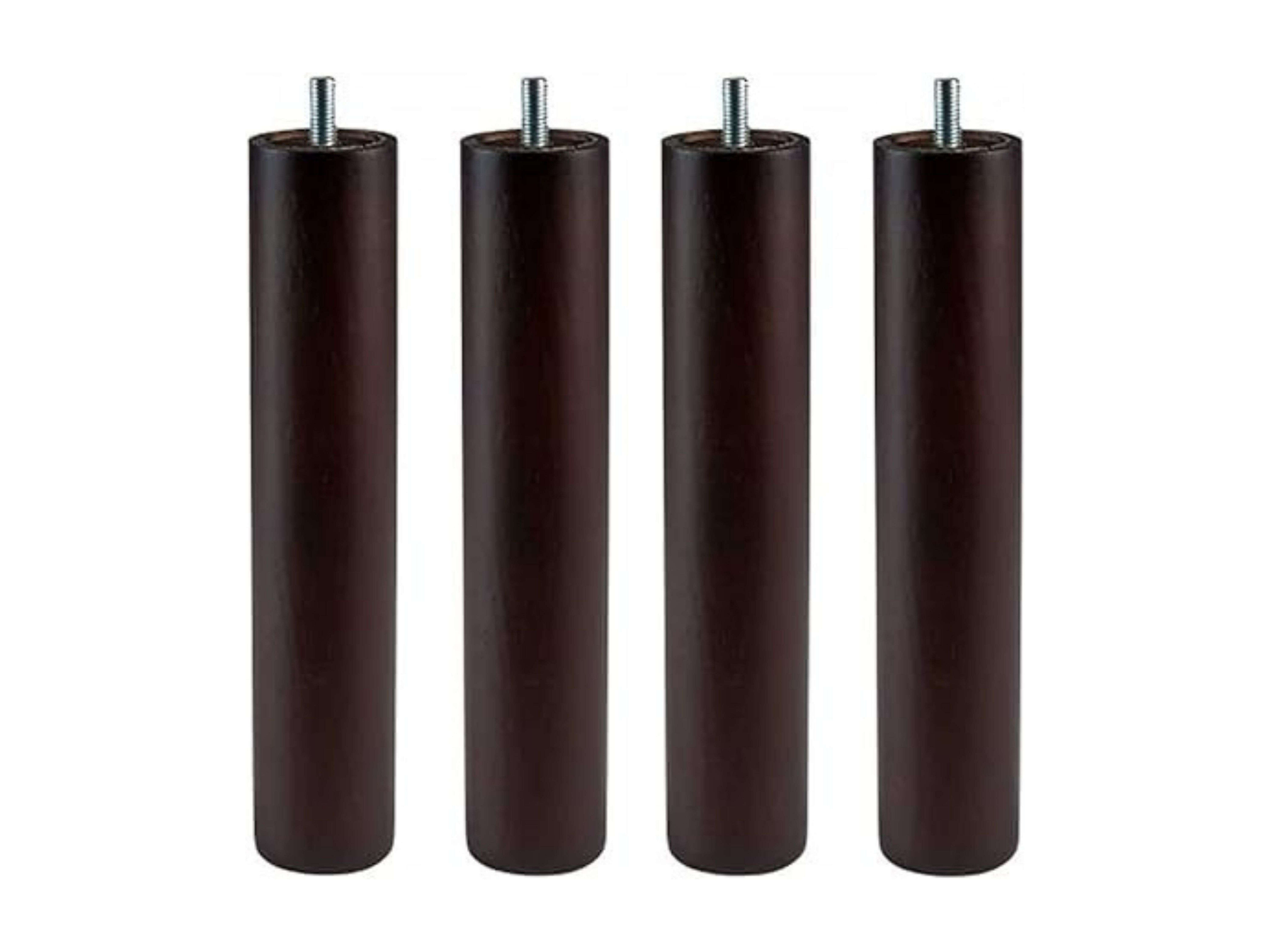 Lot de 4 pieds cylindriques 25 cm Sommier tapissier avec filetage anti-bruit en Wengue
