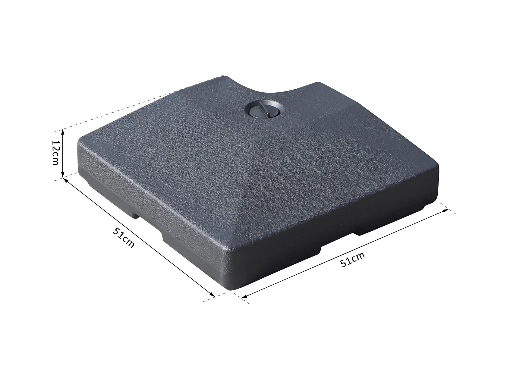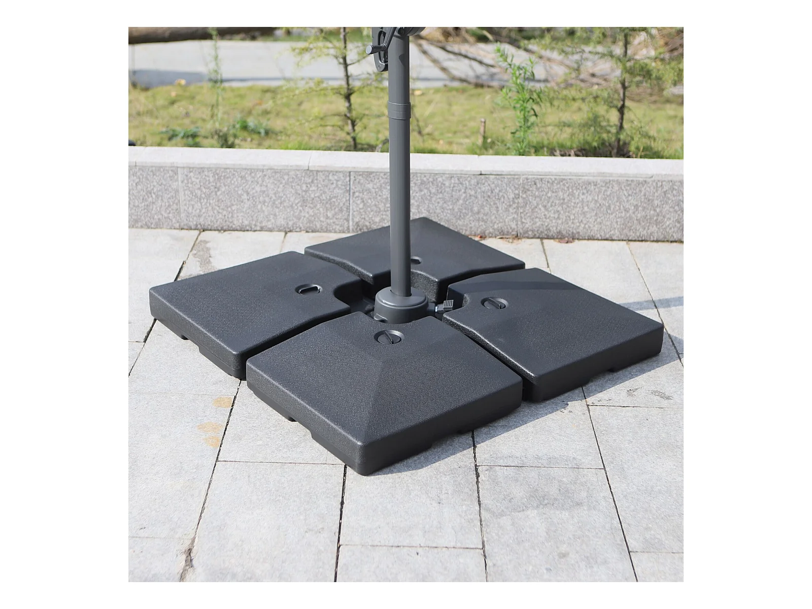 Lot de 4 poids de lestage carré pour parasols déportés dim. par dalle 51L x 51l x 12H cm polyéthylène haute densité noir