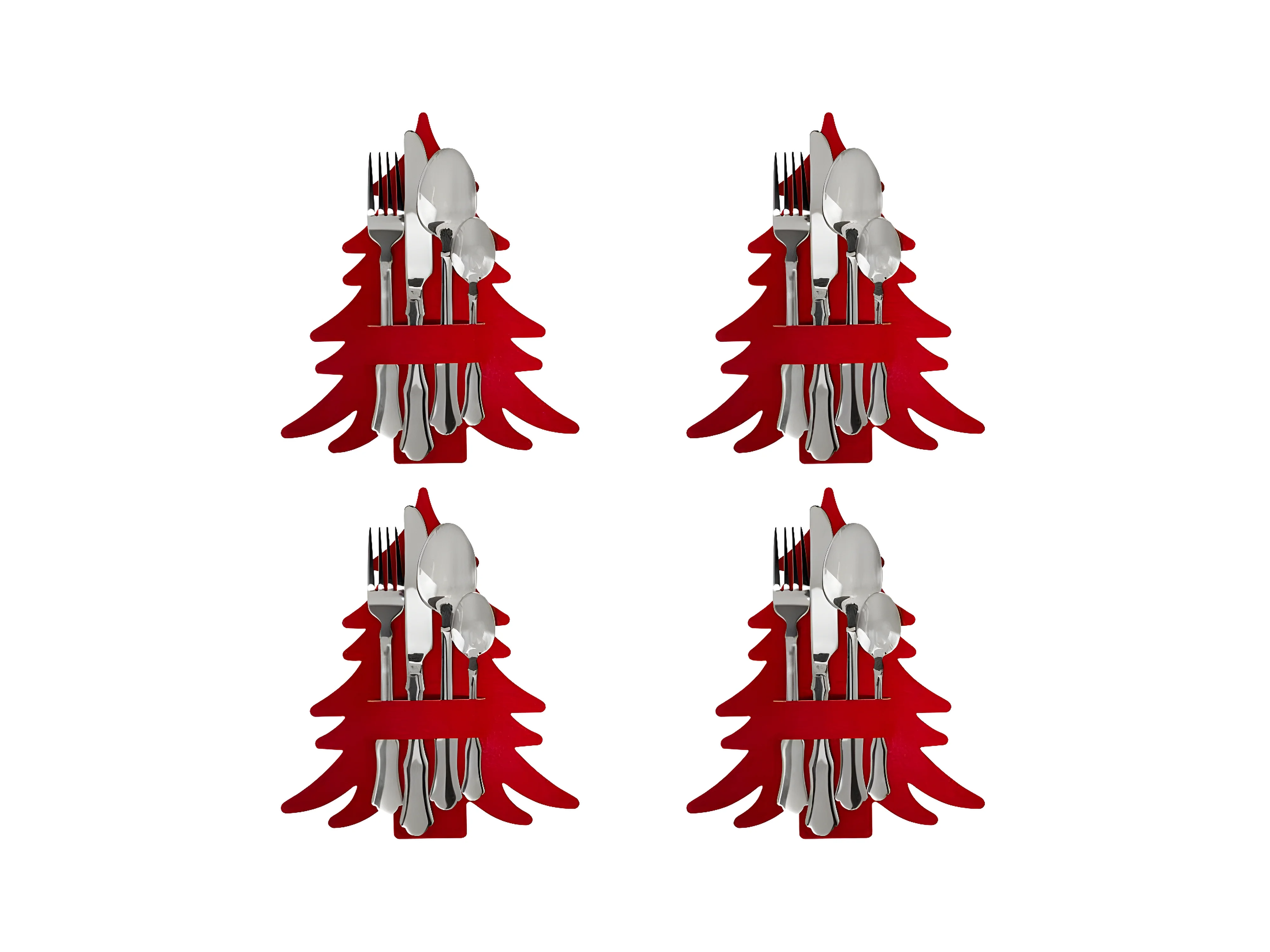 Lot de 4 Porte-Couverts "Sapin" 25cm Rouge