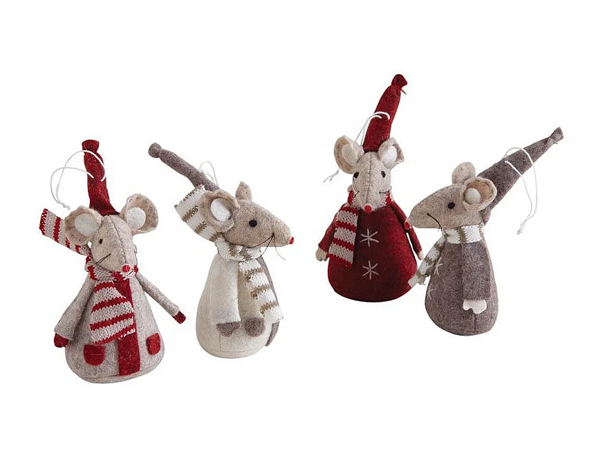 Lot de 4 souris décoratives en feutrine et coton – Décoration Noël et intérieur cosy