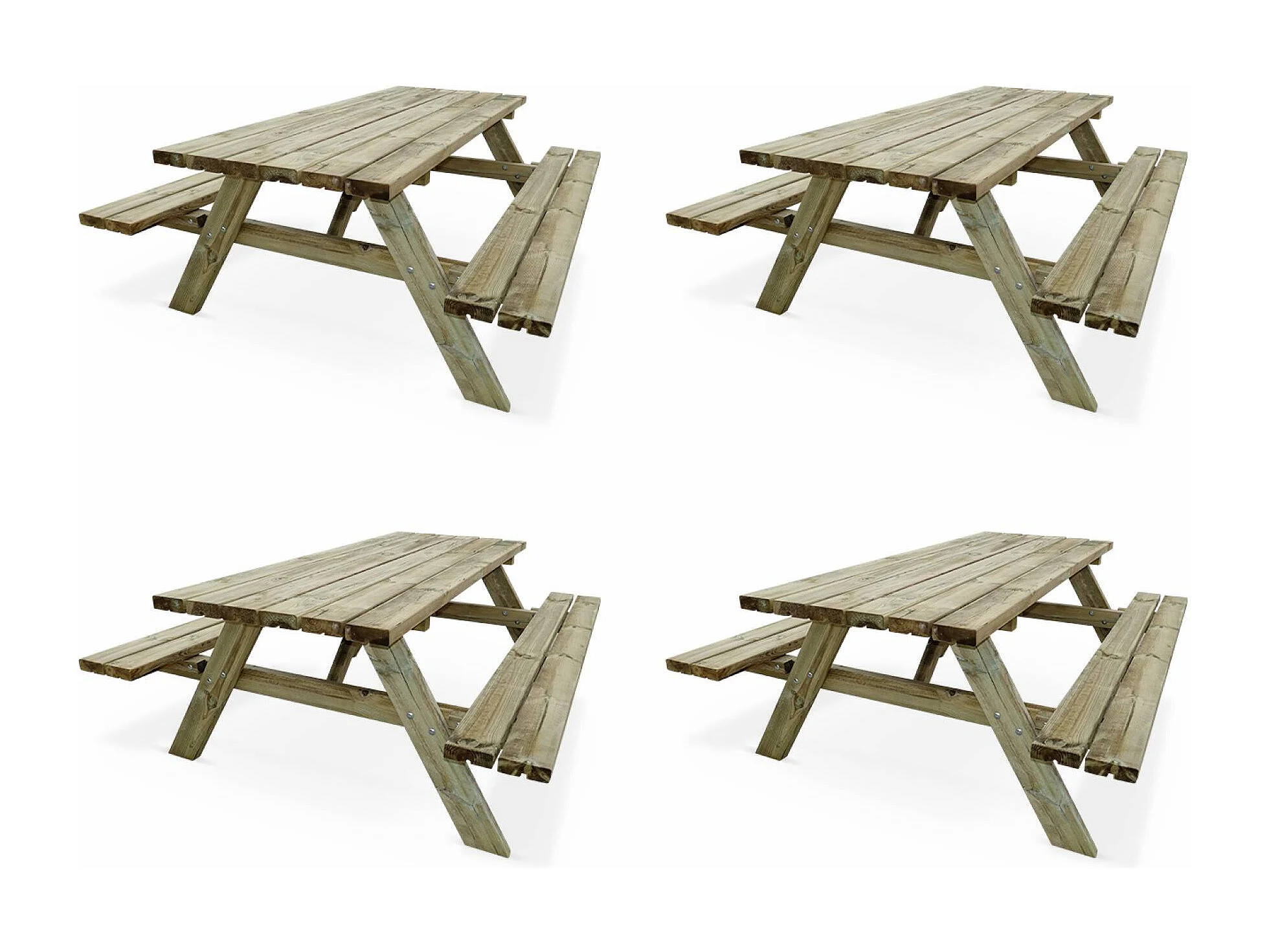 Lot de 4 tables de pique-nique 180 cm avec bancs rabattables en bois. 6 places - PANCHINA - Tables de jardin robustes en pin sylvestre
