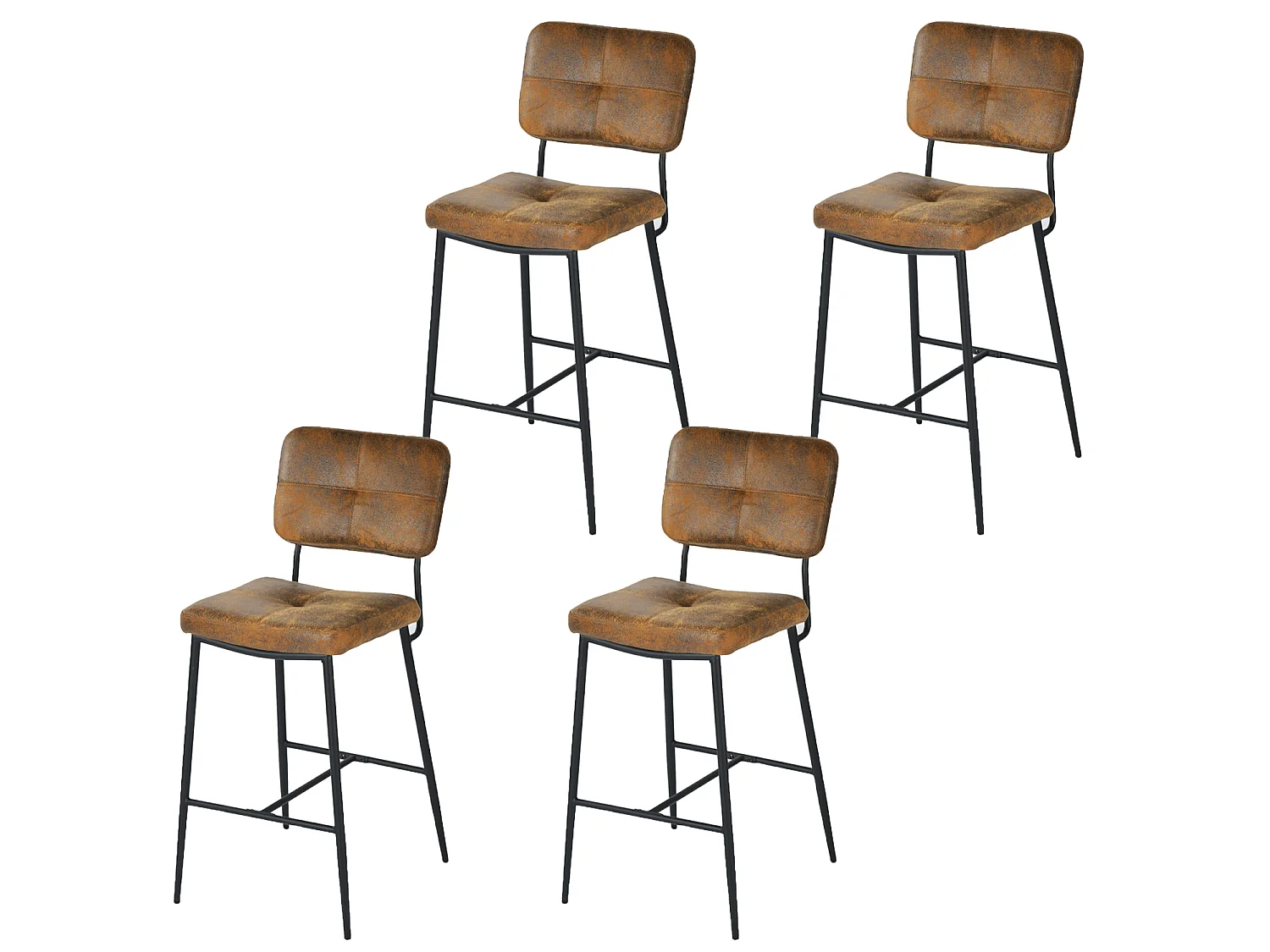 Lot De 4 Tabouret De Bar Industriel Avec Dossier Et Repose-pieds, Siège Rembourrés Marron