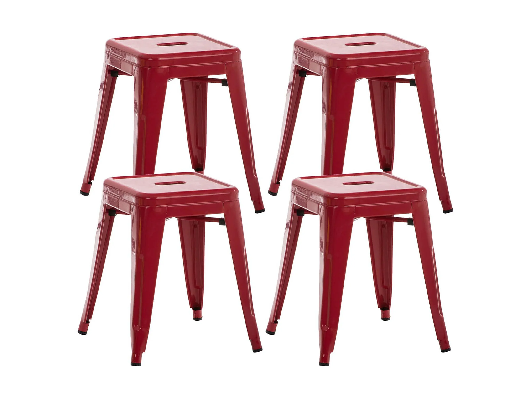 Lot de 4 Tabouret - Métal & Métal - Rouge - Armin