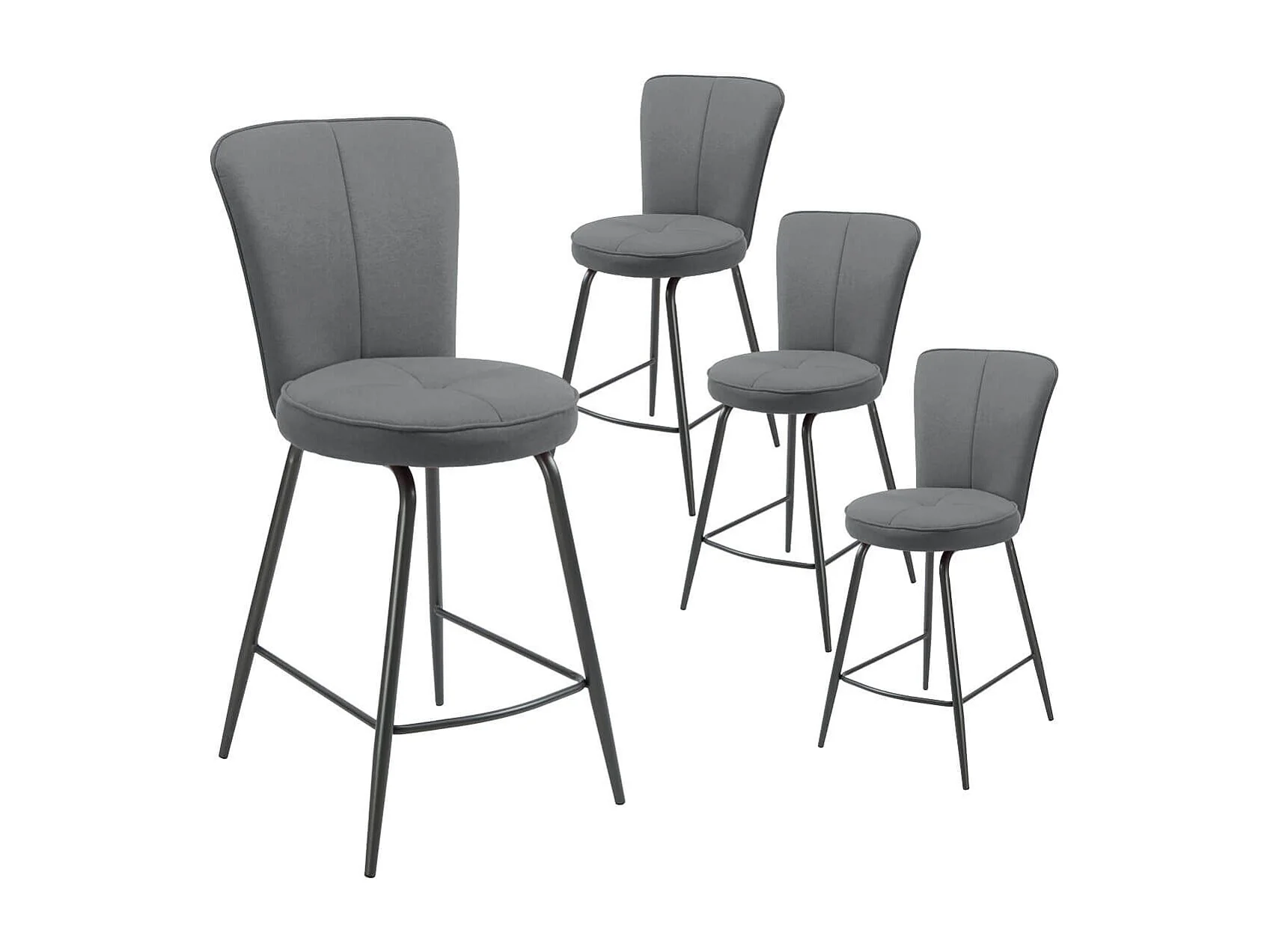 Lot de 4 tabourets assise de bar matelassée tissu toucher doux gris pieds métal laqué anthracite - ELLIPSE