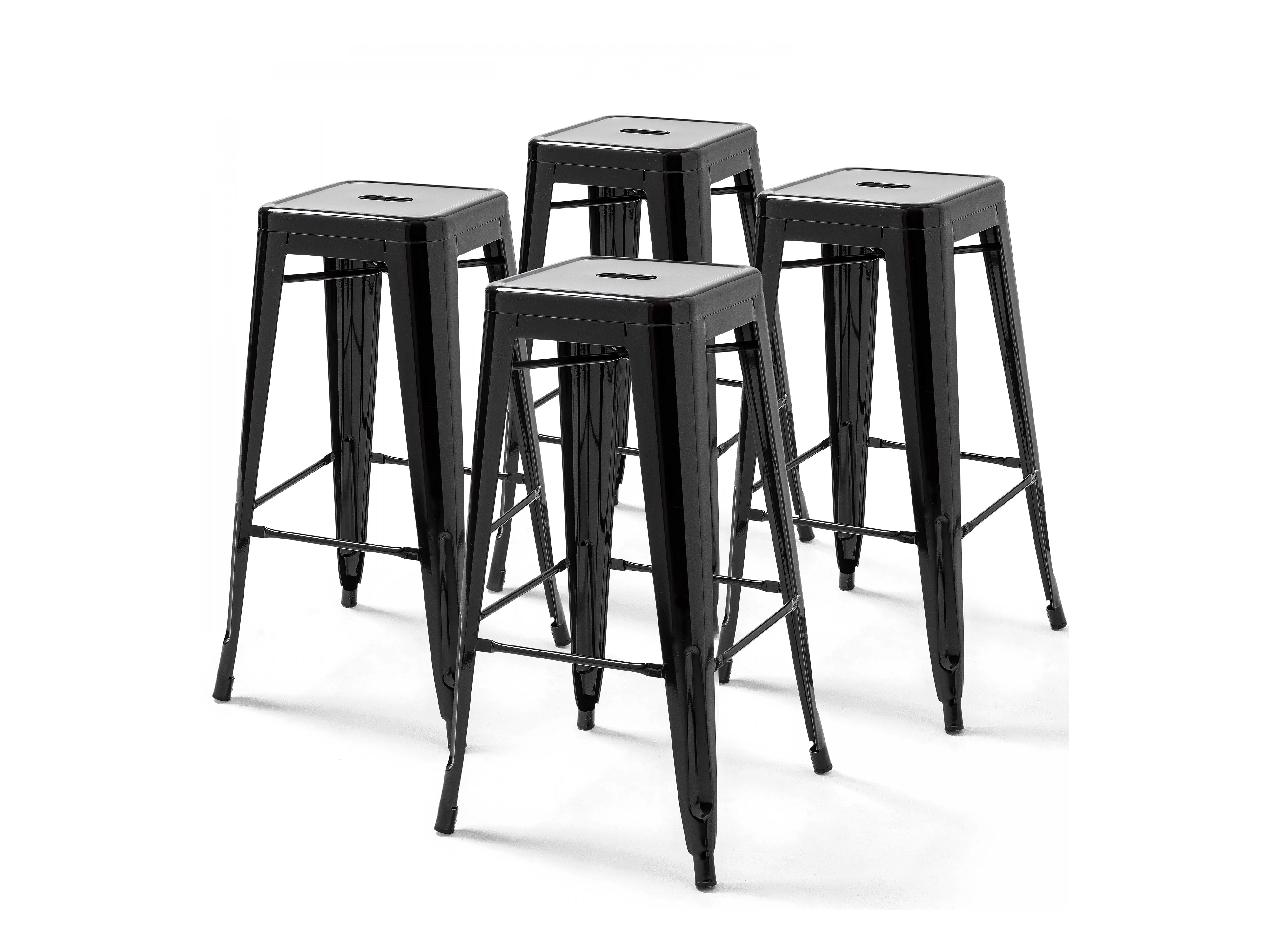 Lot de 4 tabourets de bar en acier noir brillant