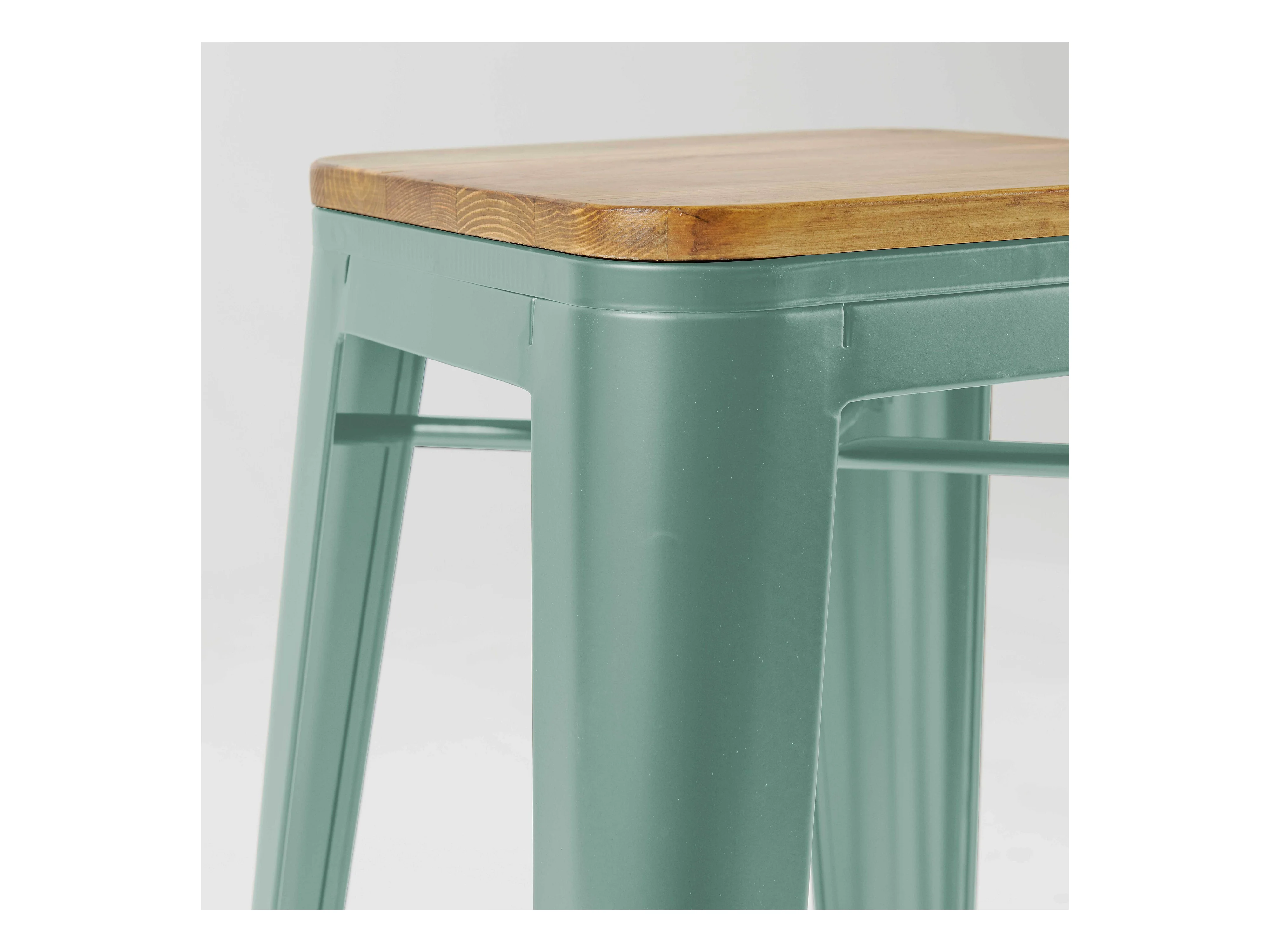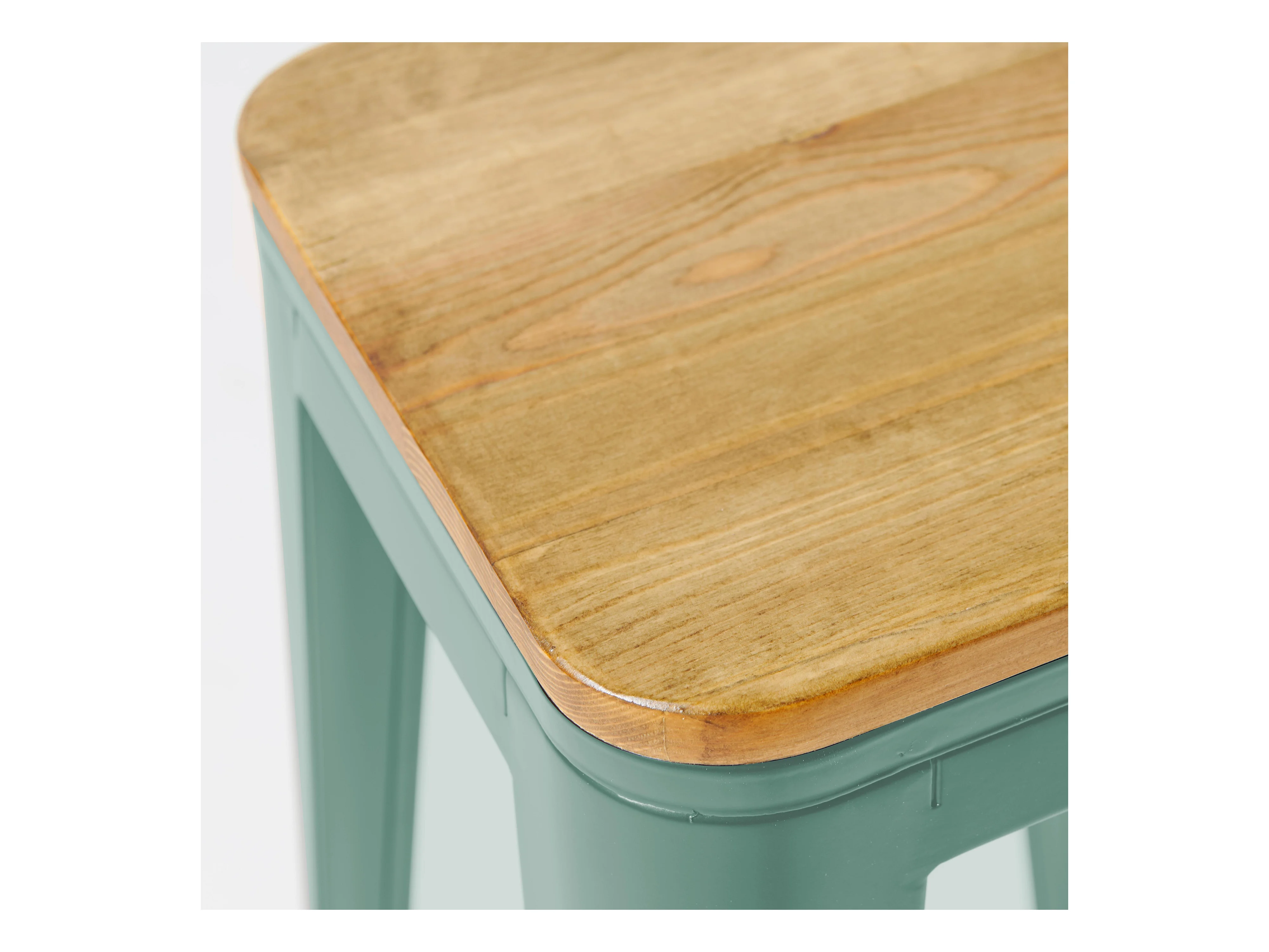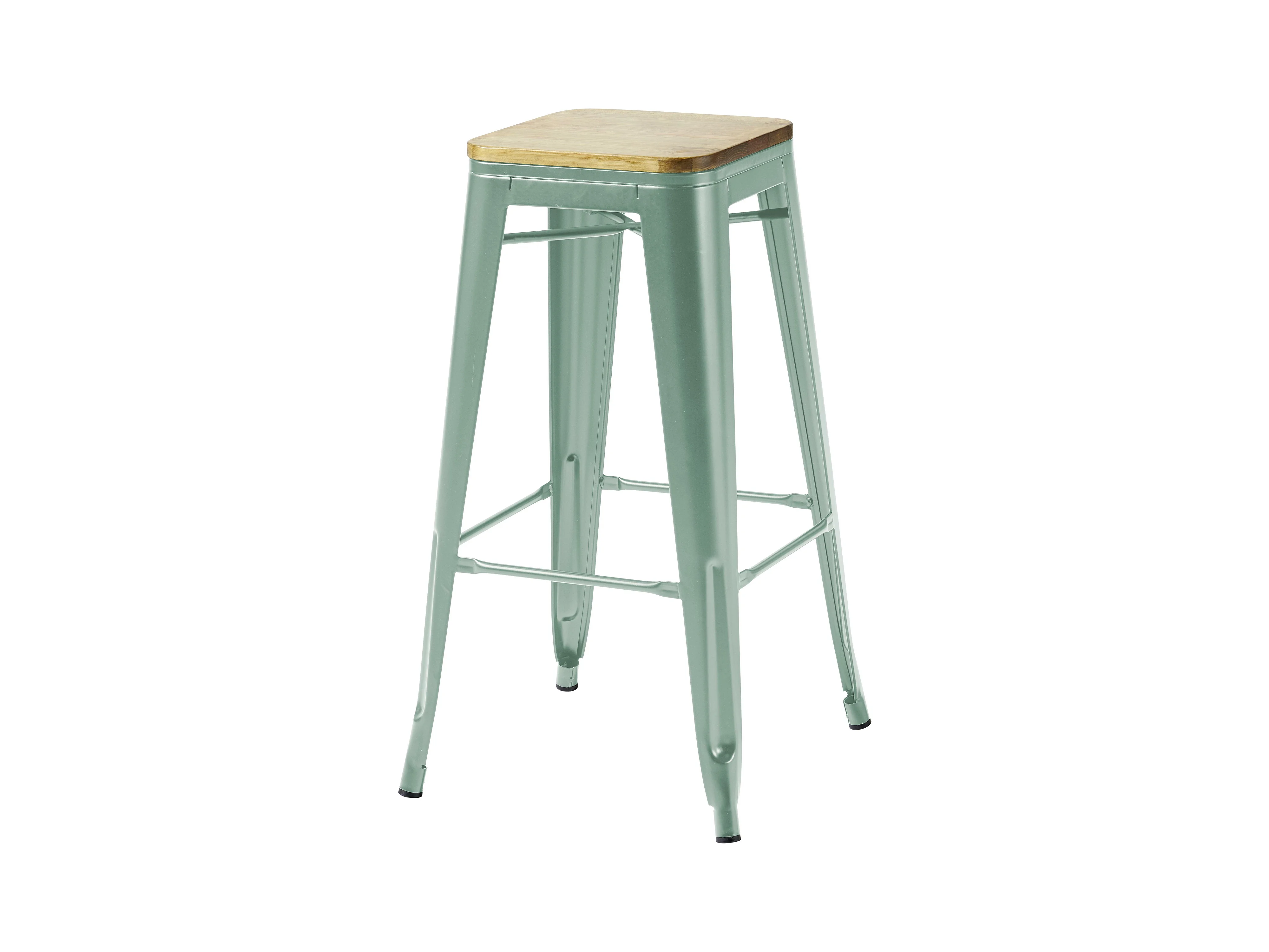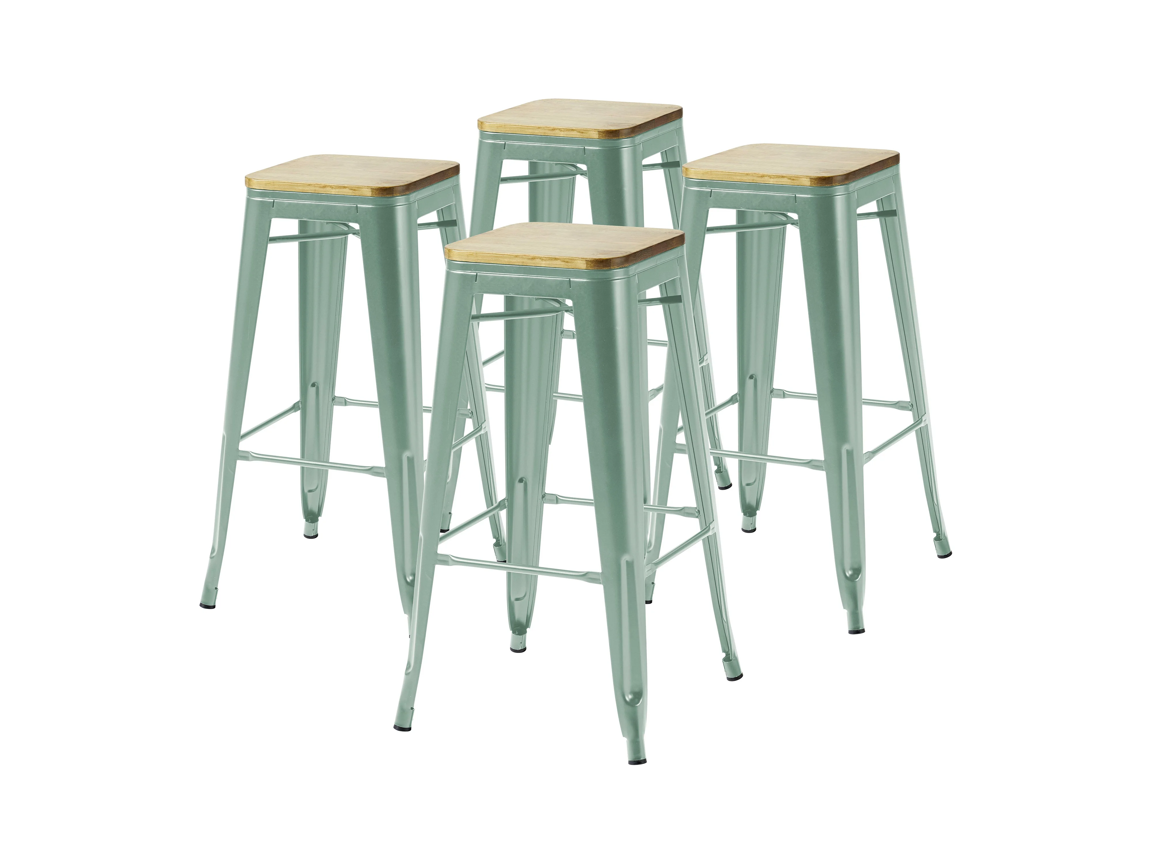 Lot de 4 tabourets de bar en métal mat vert gris et bois