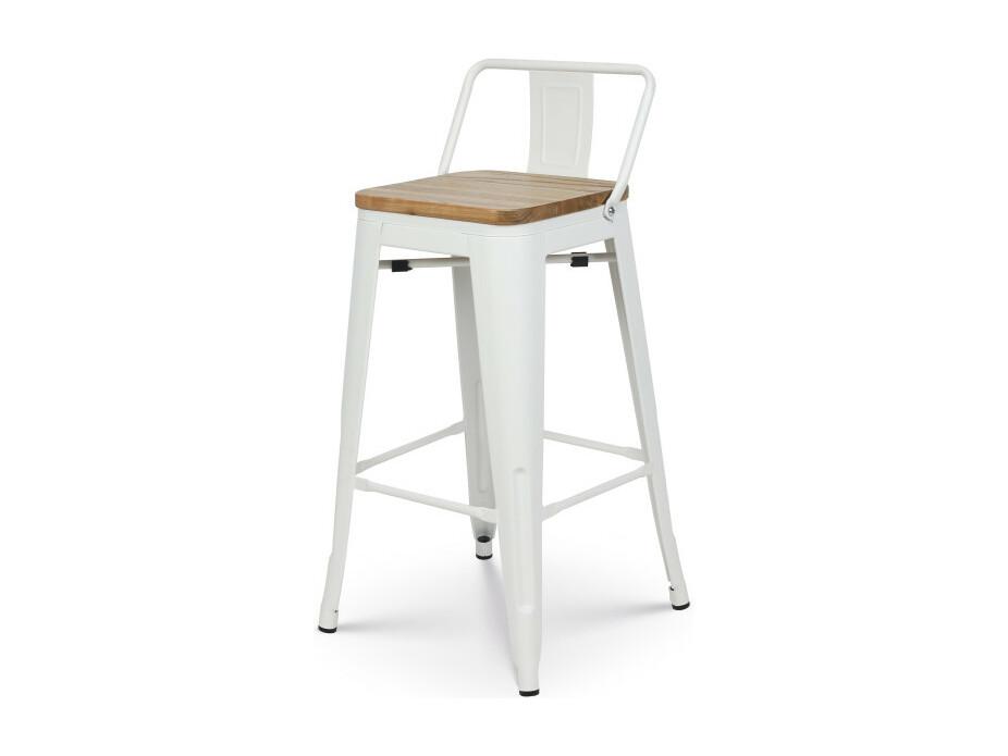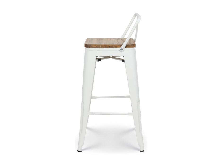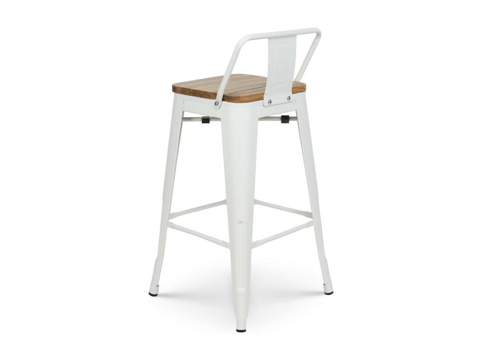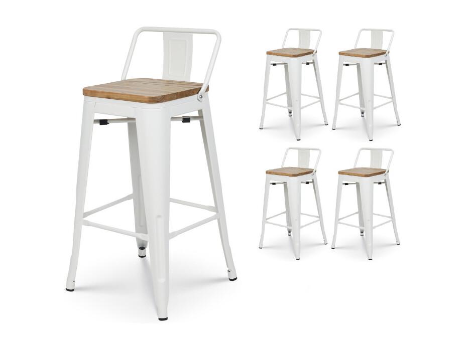 Lot de 4 tabourets en métal blanc mat style industriel avec dossier et assise en bois clair - Hauteur 66cm