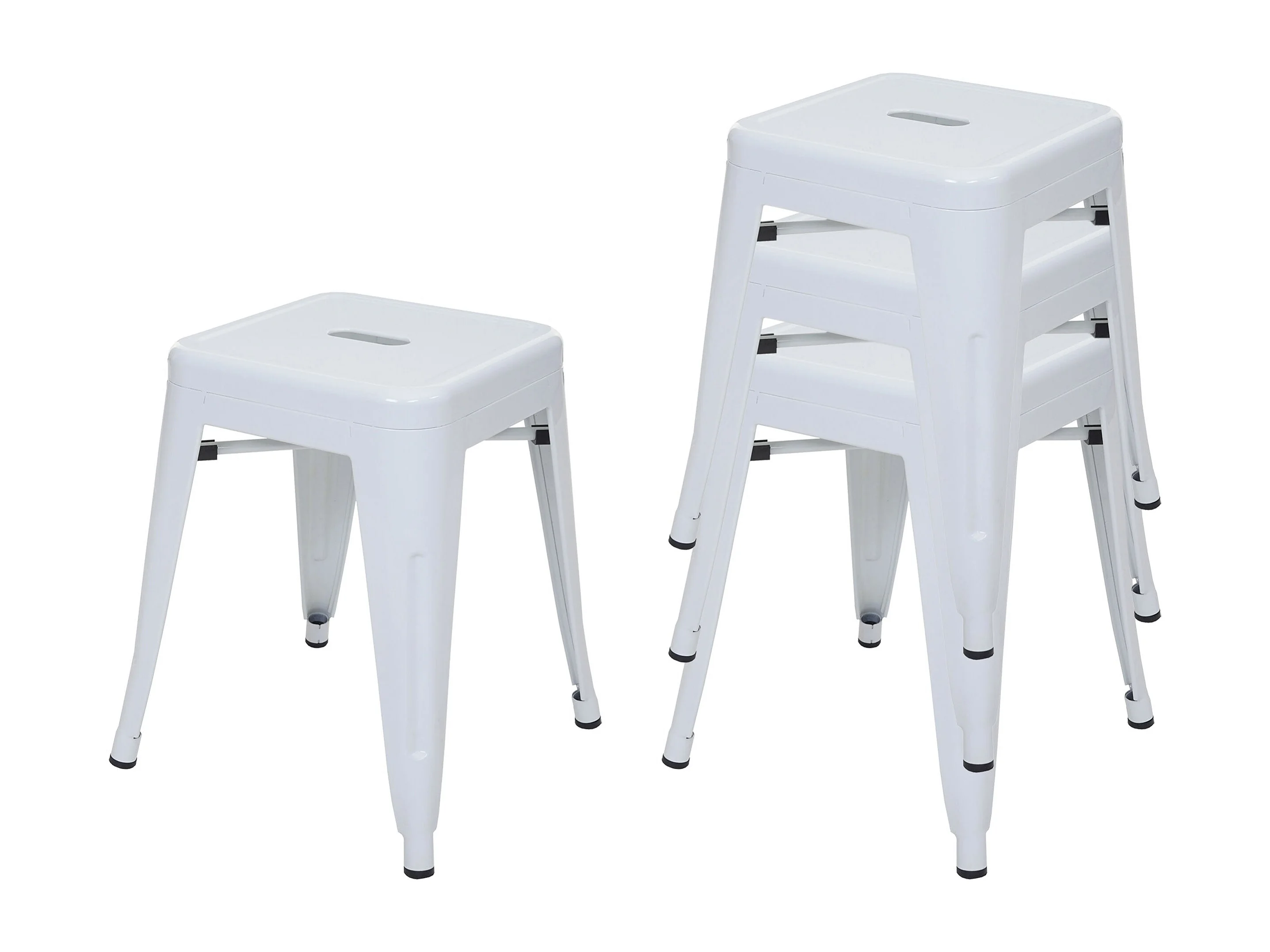 Petit tabouret industriel acier brillant renforcé Kalax 45cm --Couleur Blanc