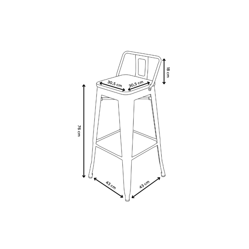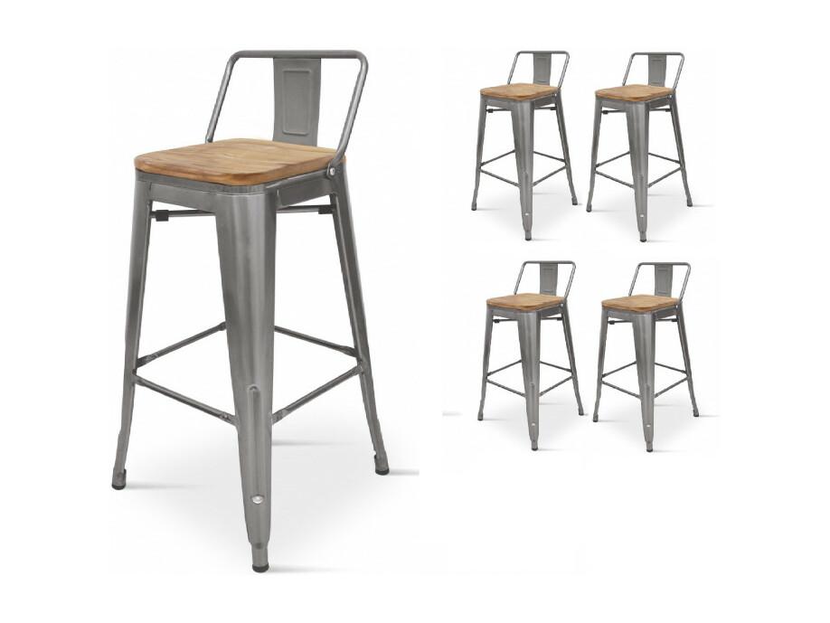 Lot de 4 tabourets style industriel avec dossier en métal brut aspect galvanisé et assise en bois clair - Hauteur 76 cm