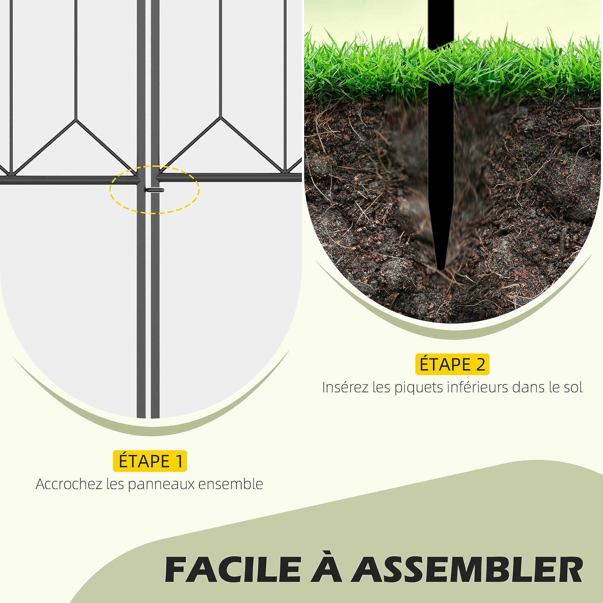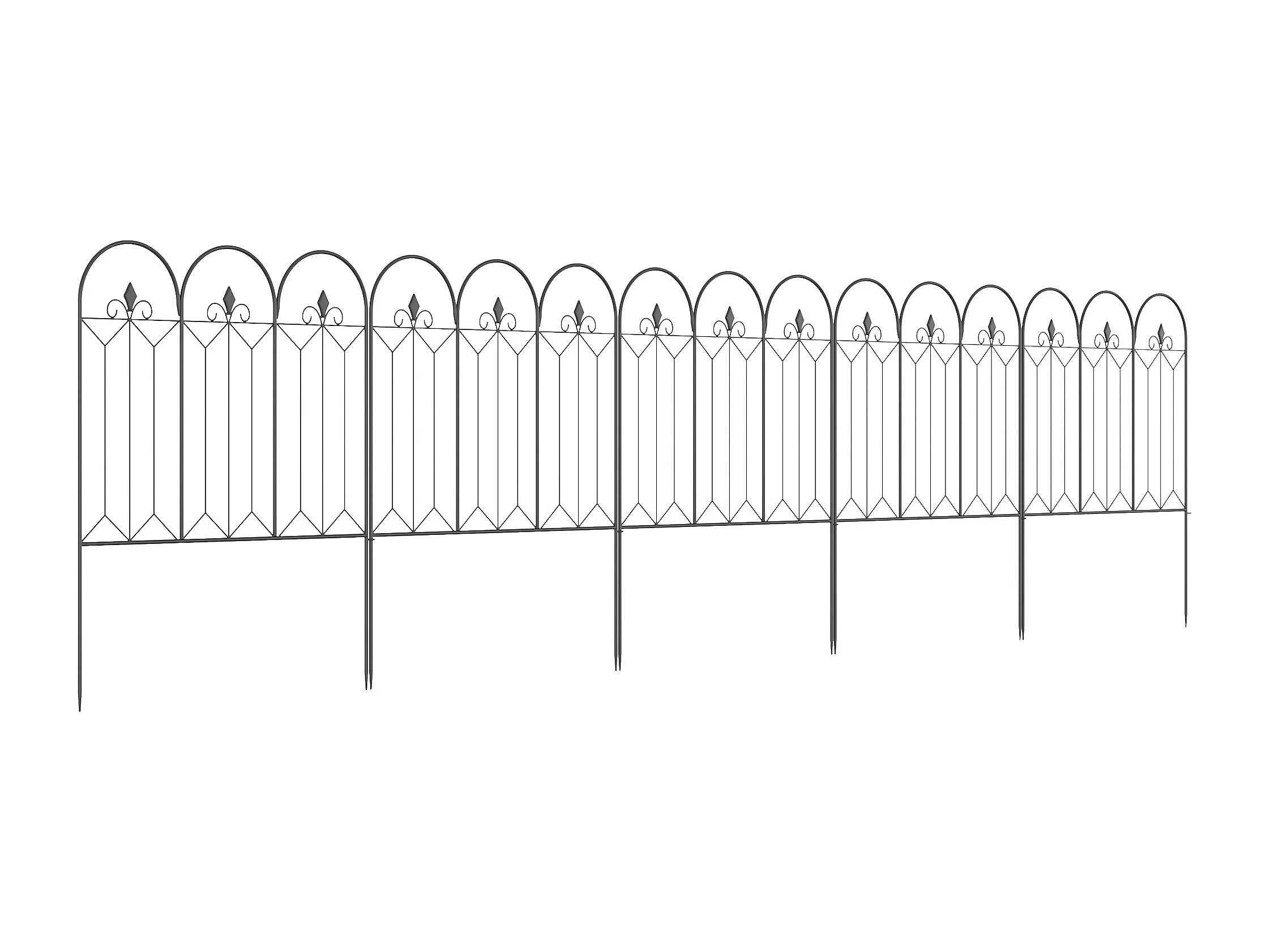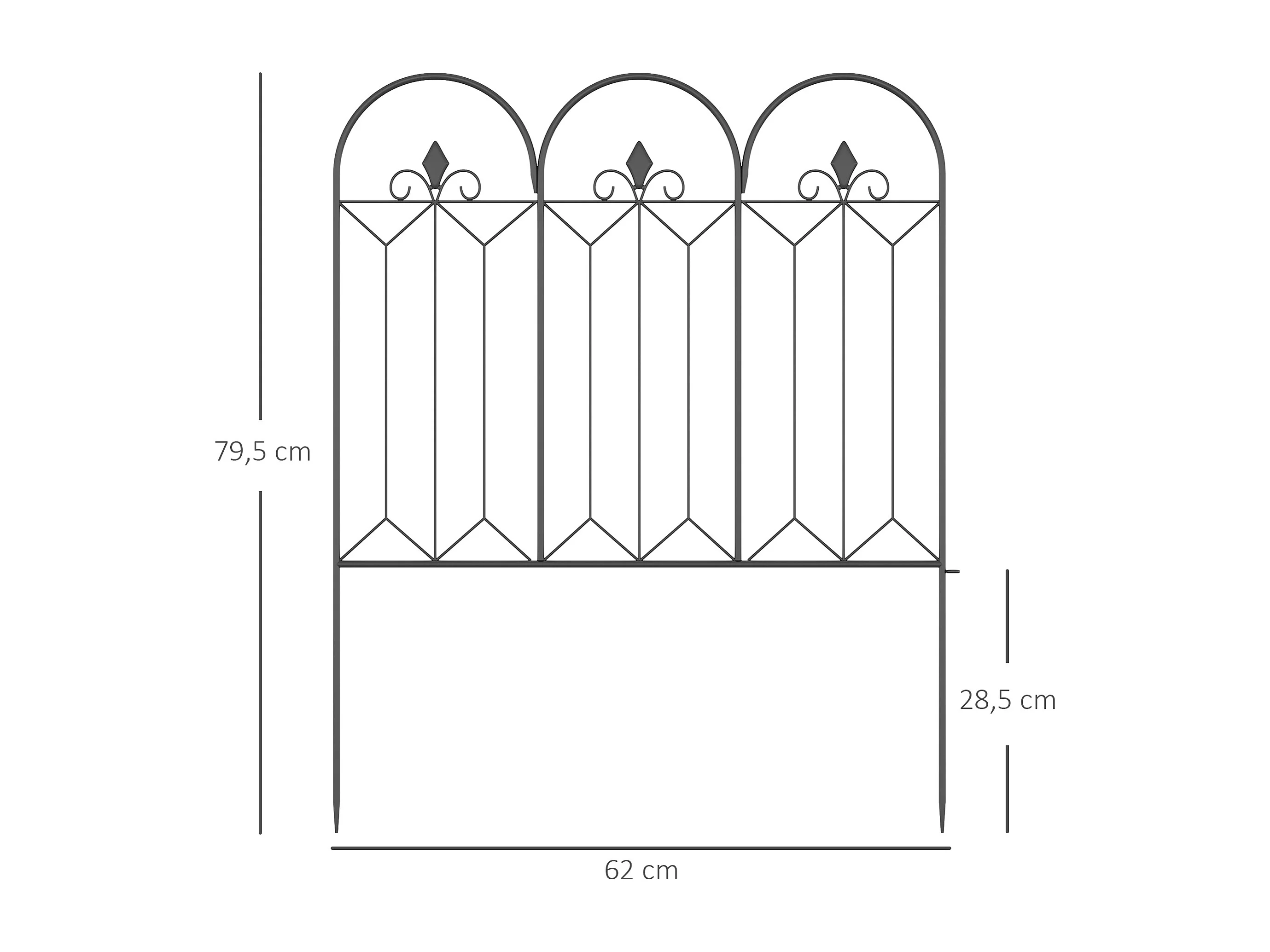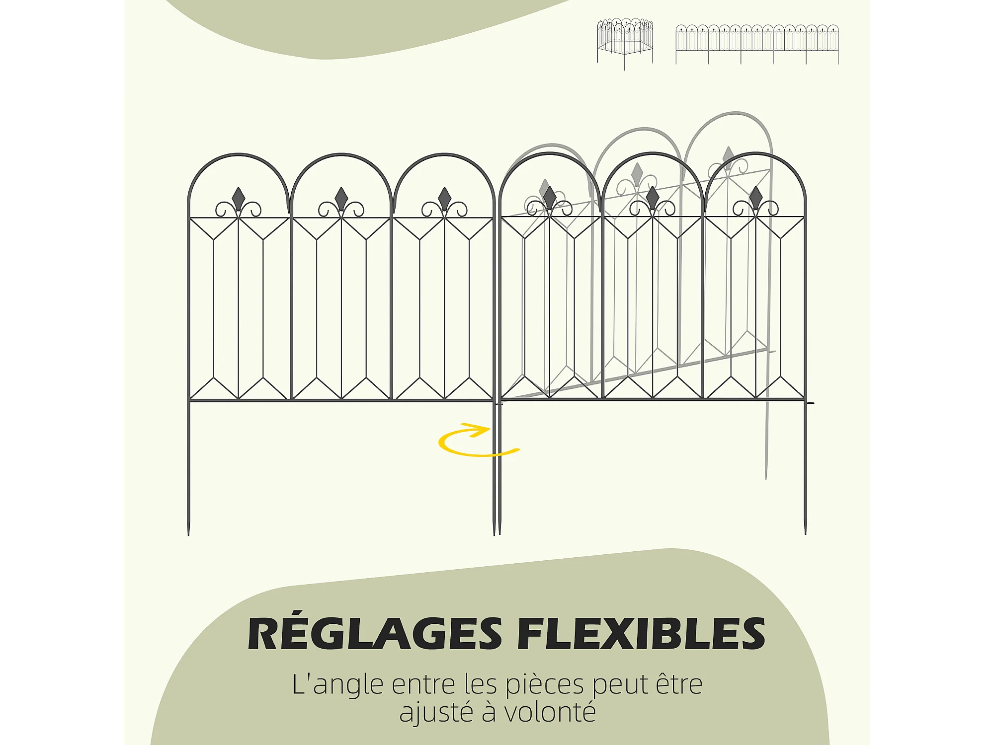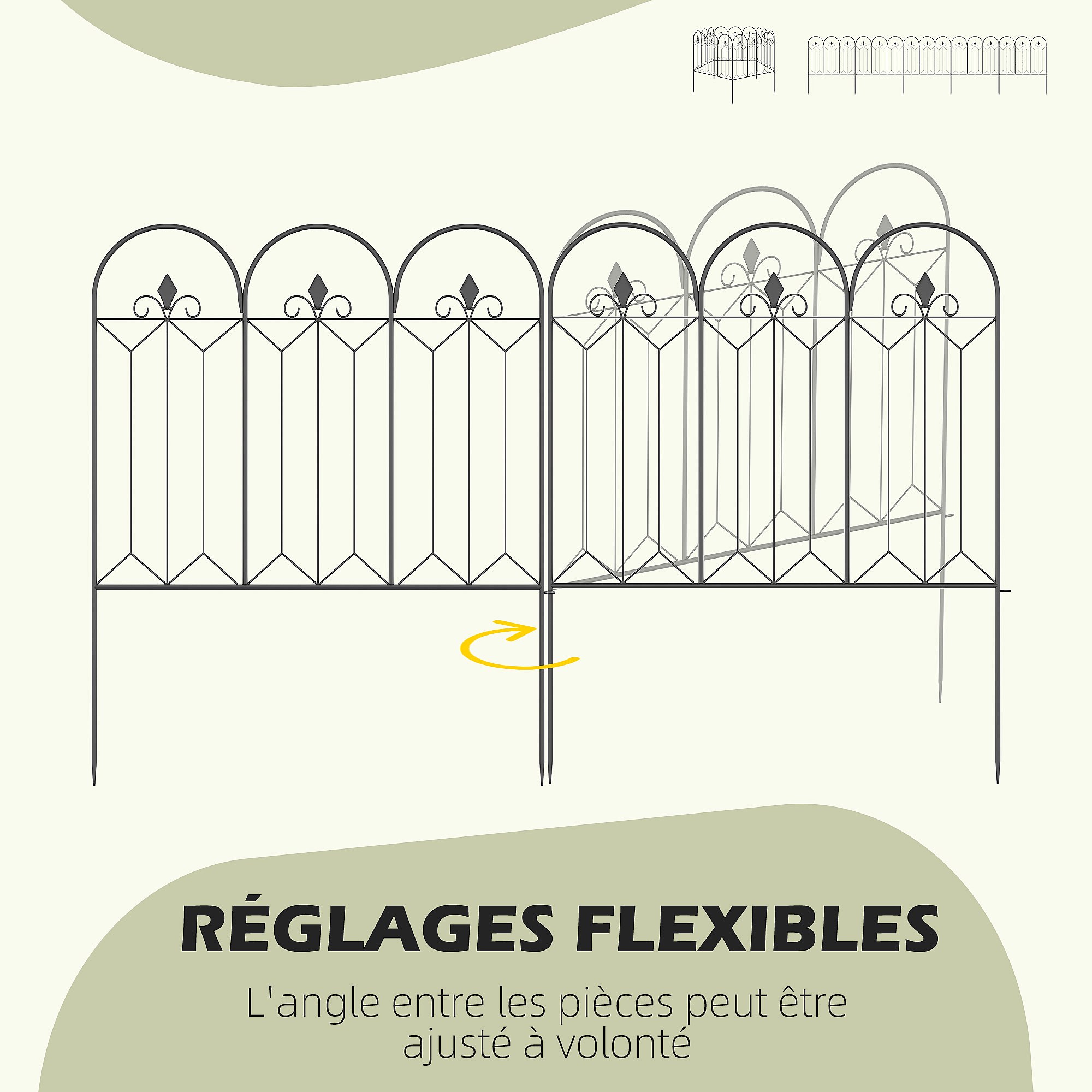Lot de 5 clôtures de jardin décoratives en métal avec ornements - dim. totales 305L x 79,5H cm - noir
