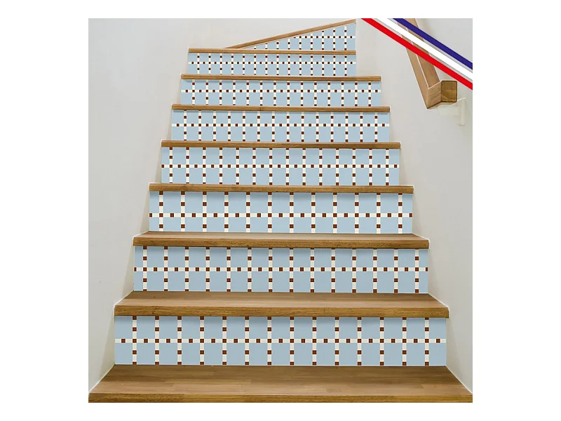 Contremarches adhésives PVC pour escalier - Vichy Bleu - Lot de 5 - 15x100 cm