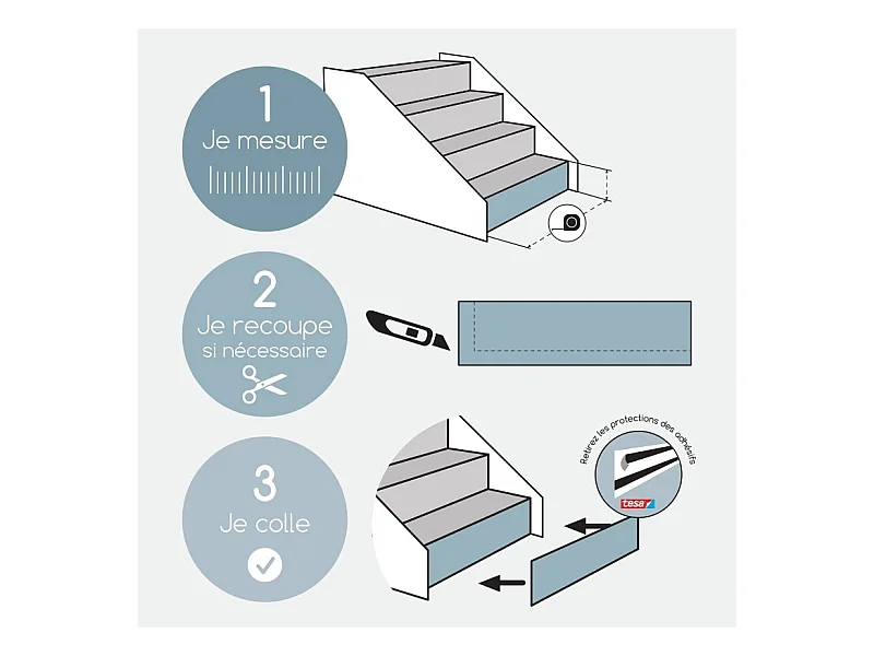Contremarches adhésives PVC pour escalier - multicouleur - Lot de 5 (15x100 cm)