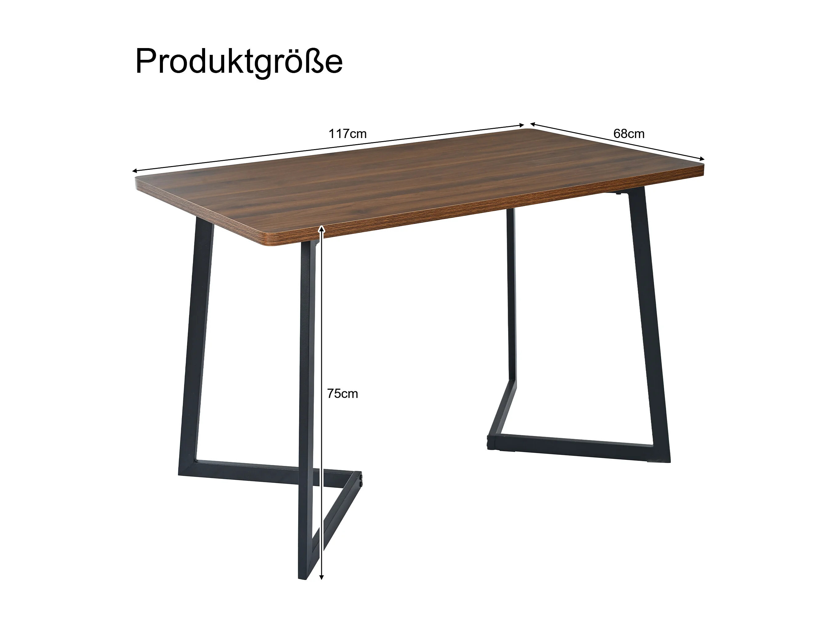 Lot de 5 table à manger et chaises - 117 x 68 x 75 cm - Table pieds noir + 4 chaises brun ​- MDF - marron
