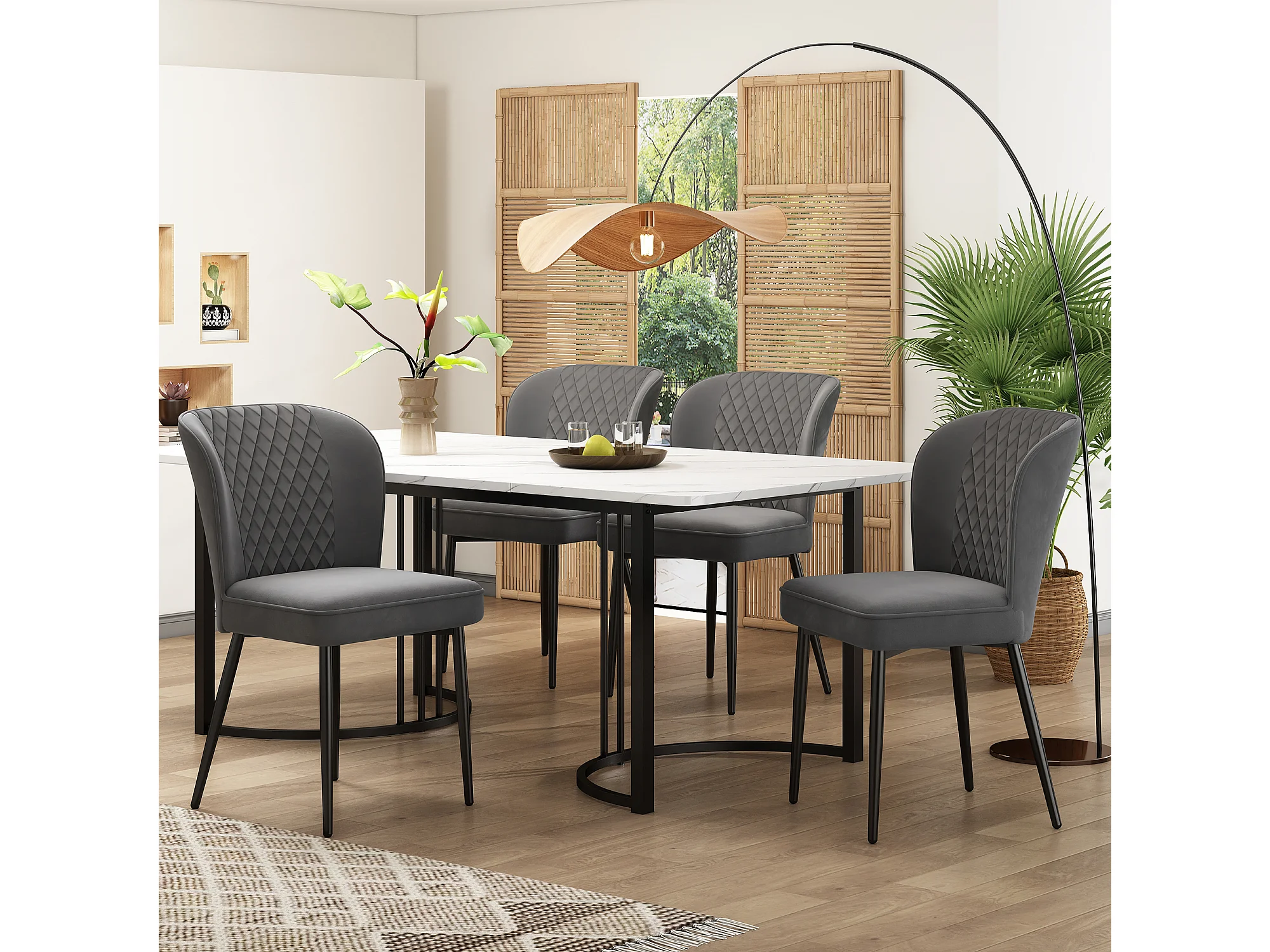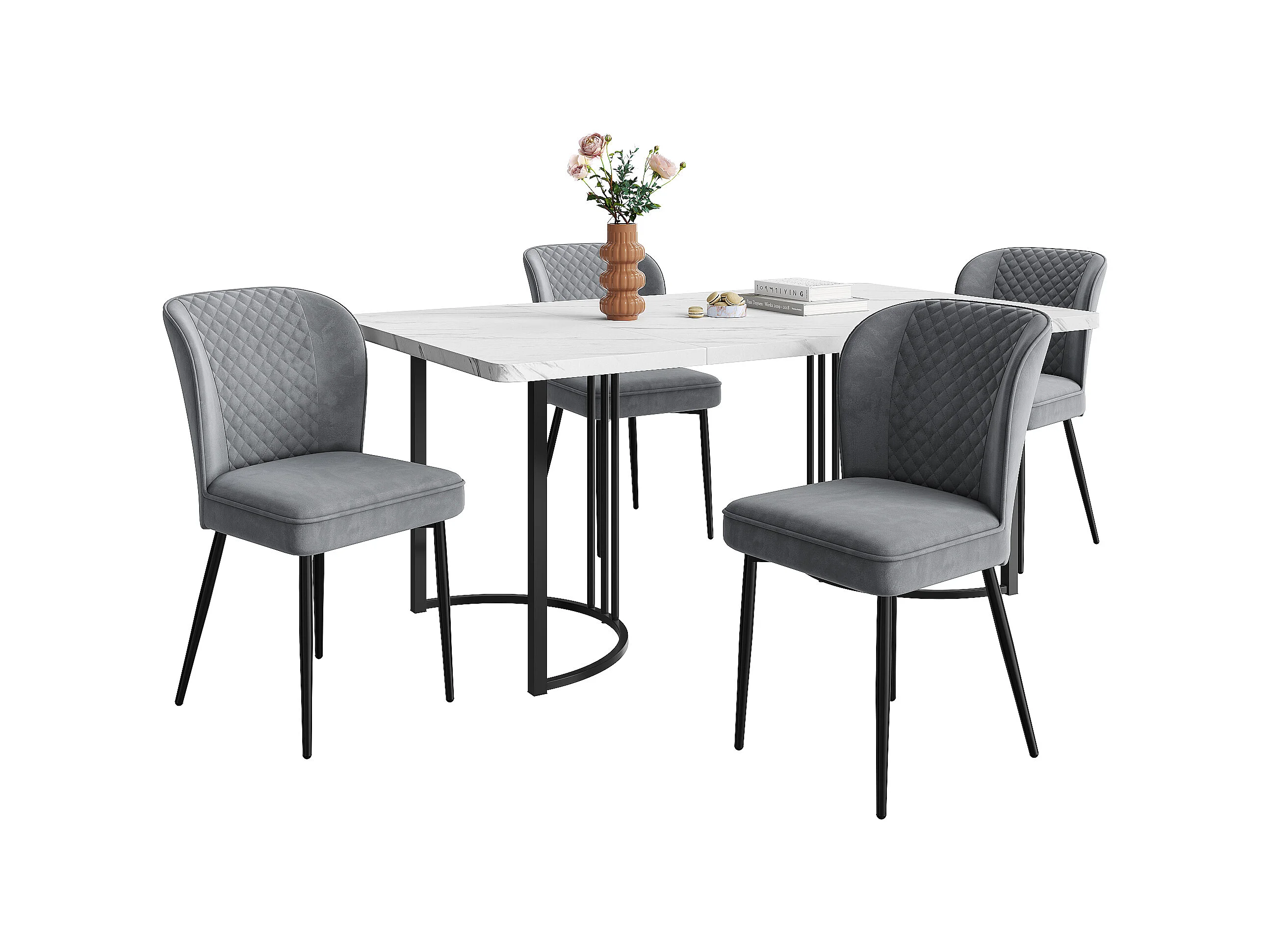 Lot de 5 table à manger et chaises - 140 x 80 x 75 cm - table à pieds noir - velours + MDF - gris foncé