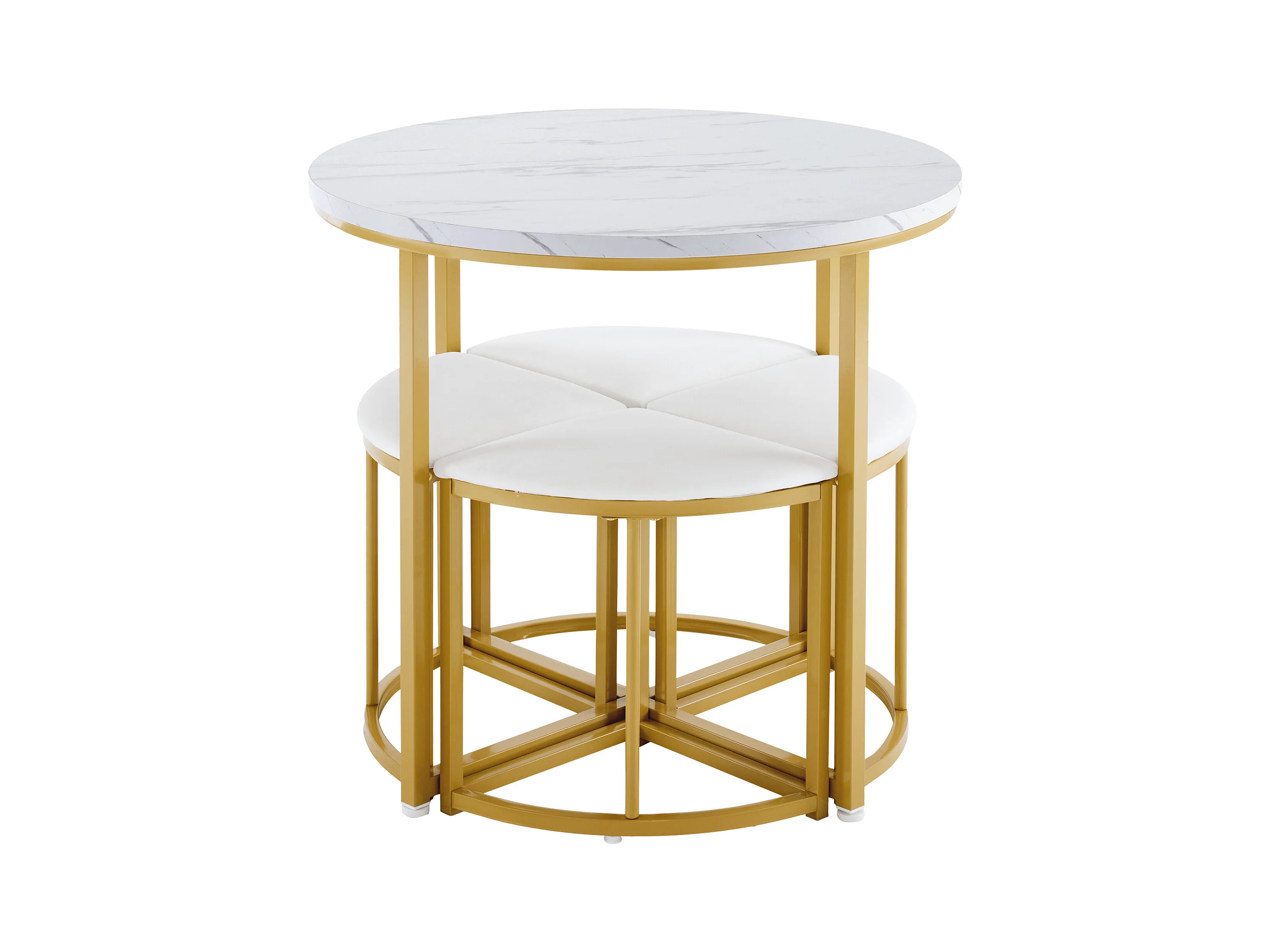 Lot de 5 table à manger et chaises - 80 x 80 x 75 cm - table à pieds doré + 4 chaises - MDF - blanc