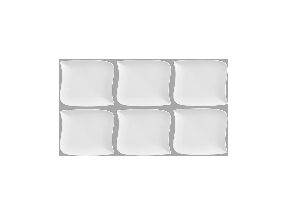 Lot de 6 Assiettes à Dessert Carrées "Vague" 22cm Blanc