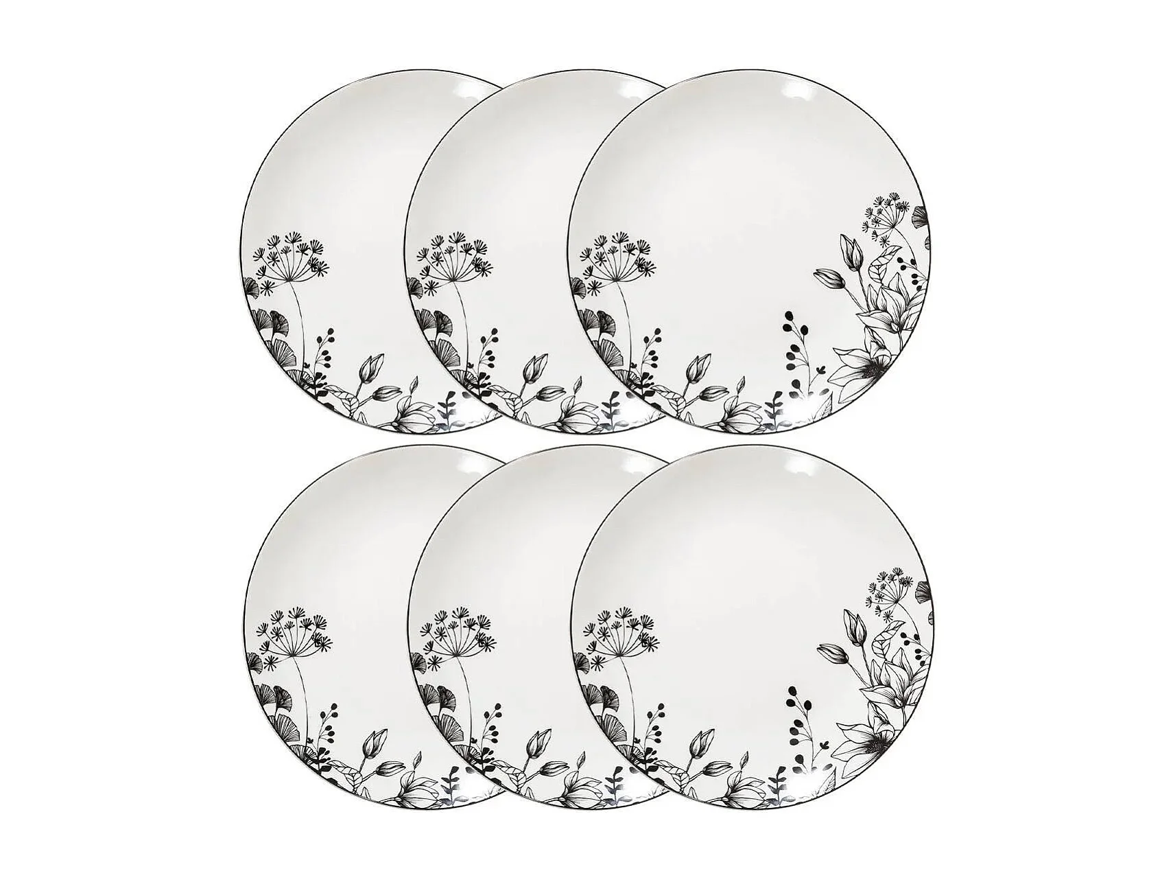 Lot de 6 Assiettes à Dessert "White Floral" 20cm Blanc