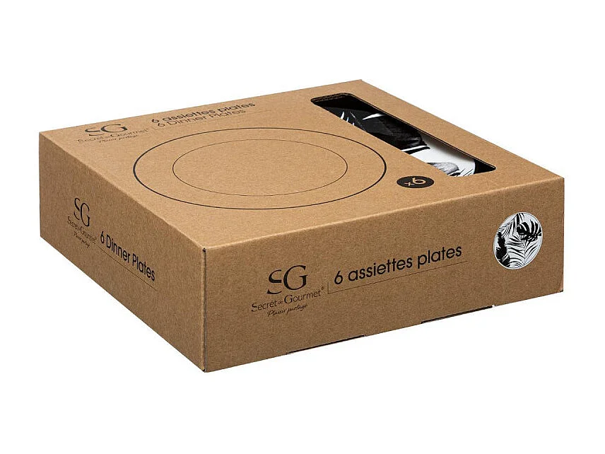 Lot de 6 Assiettes Plates "Palme" 26cm Noir