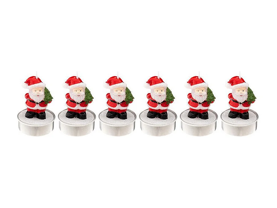 Lot de 6 Bougies Déco "Père Noël" 6cm Rouge & Blanc