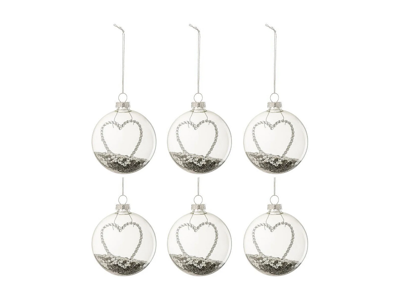 Lot de 6 Boules de Noël "Cœur Strass" 8cm Argent