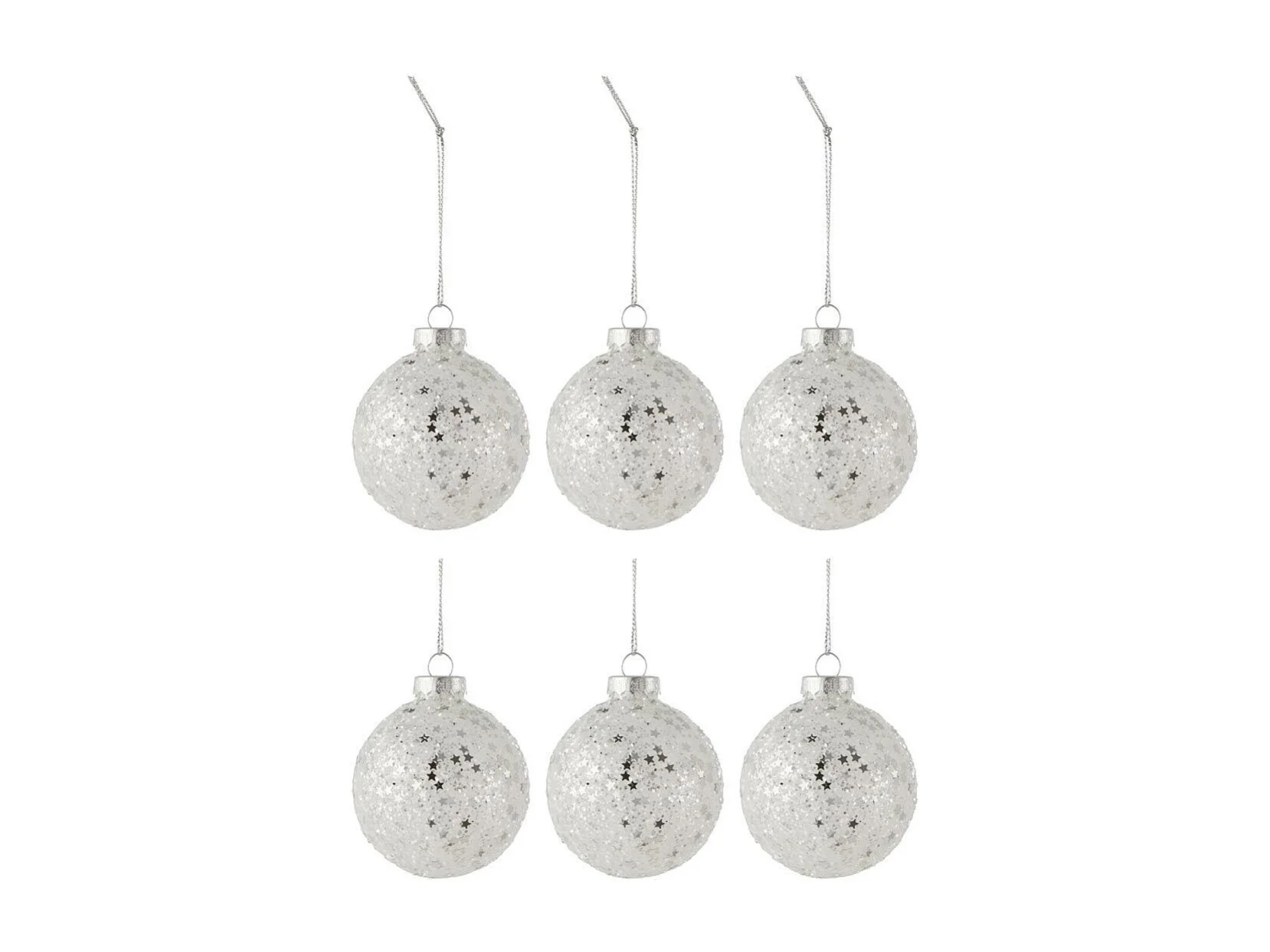 Lot de 6 Boules de Noël "Étoiles" 8cm Argent