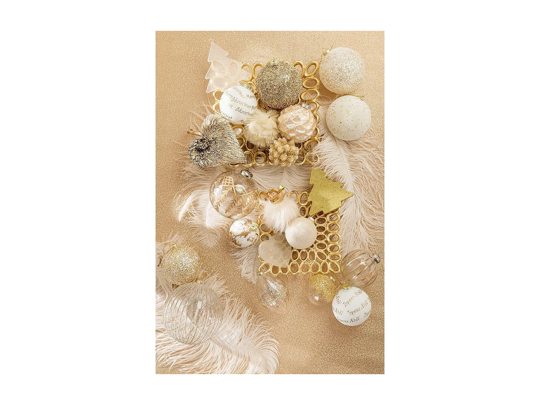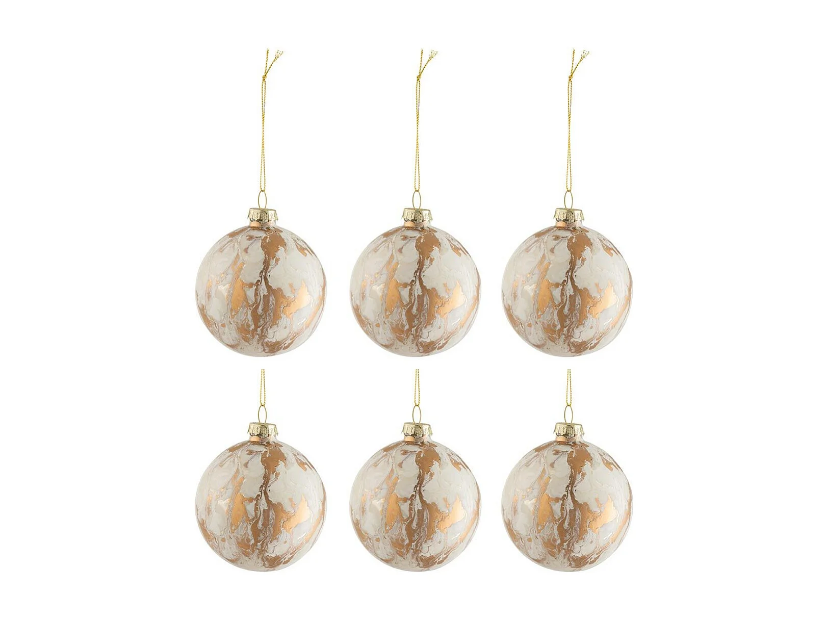 Lot de 6 Boules de Noël "Marbre" 8cm Blanc & Or