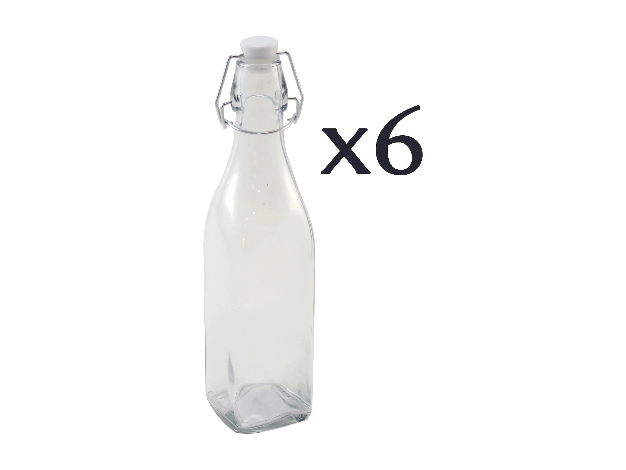 Lot de 6 bouteilles carrées en verre 0,5L avec bouchon hermétique-Longueur 6,5 x Largeur 6,5 x Hauteur 27cm