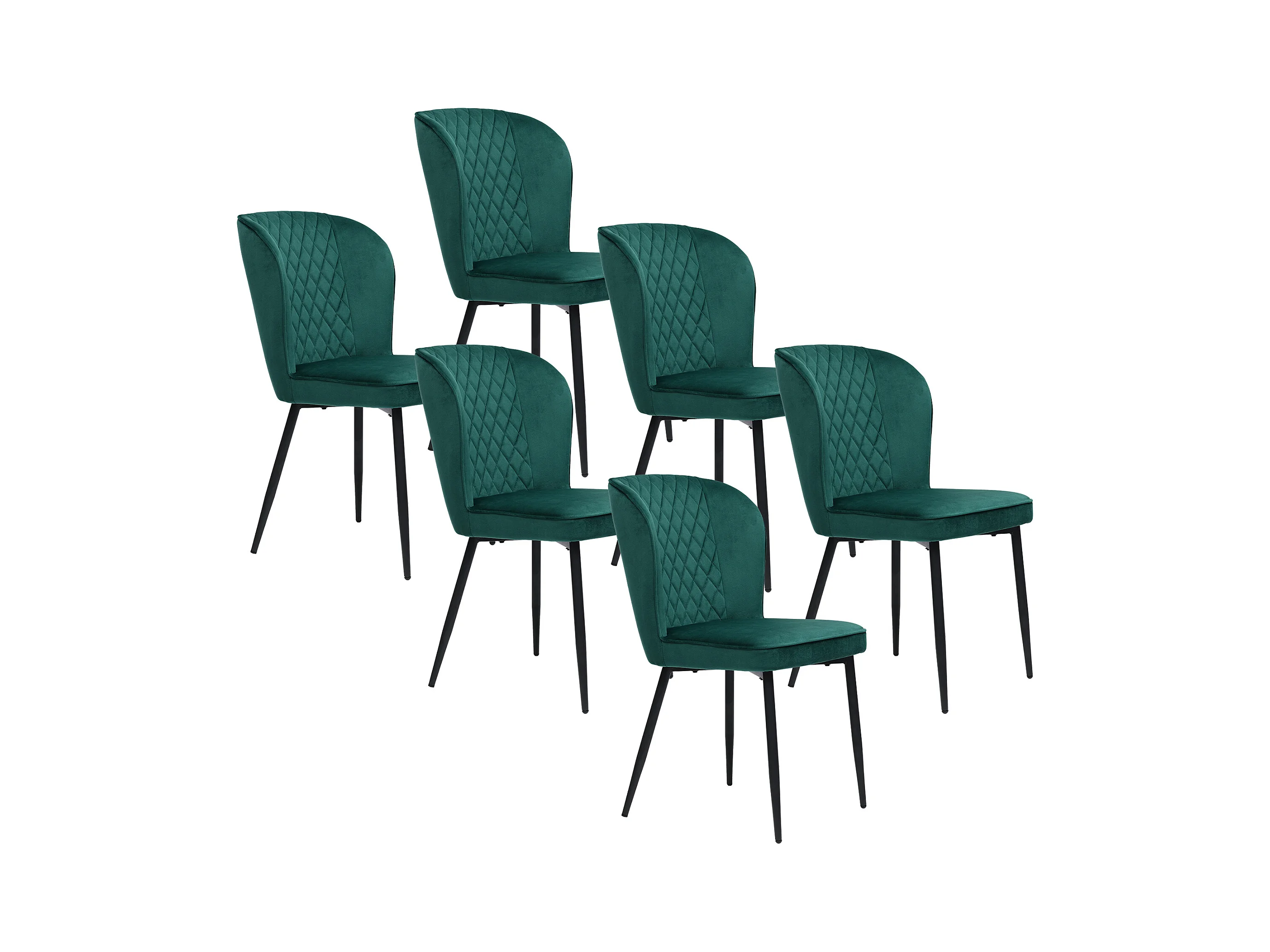Lot de 6 Chaise de salle à manger Design rembourré Structure Métallique - Vert Foncé