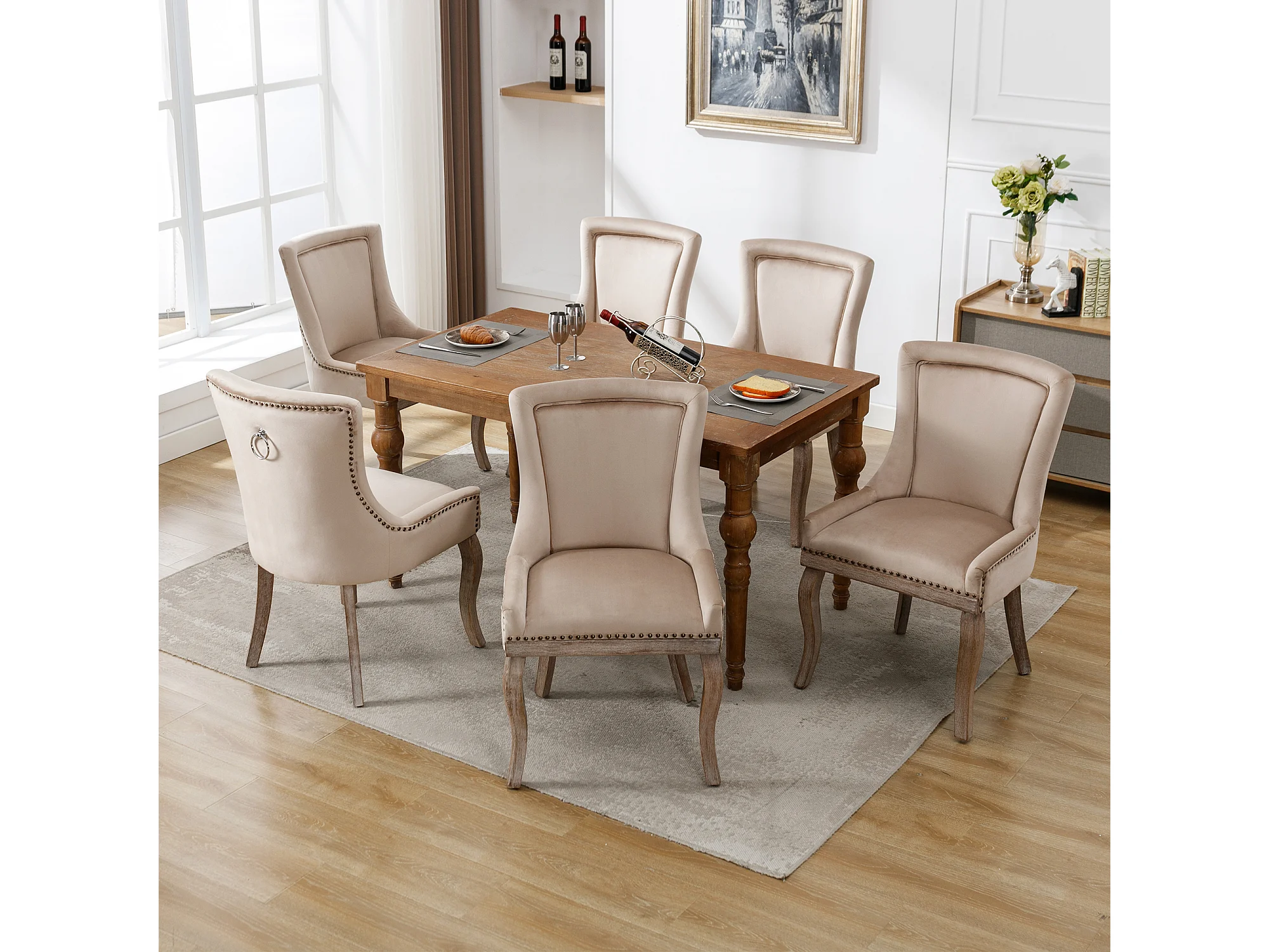 Lot de 6 Chaise de salle à manger Rembourrée avec garniture cloutée et pieds en bois - Beige