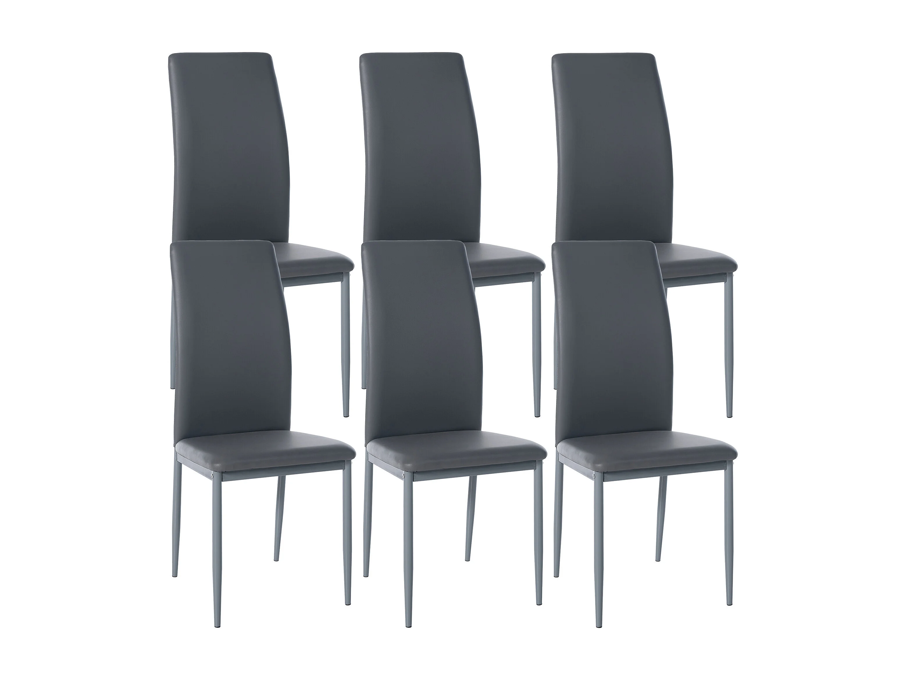 Lot de 6 chaise salle à manger - Similicuir - Gris - Savino