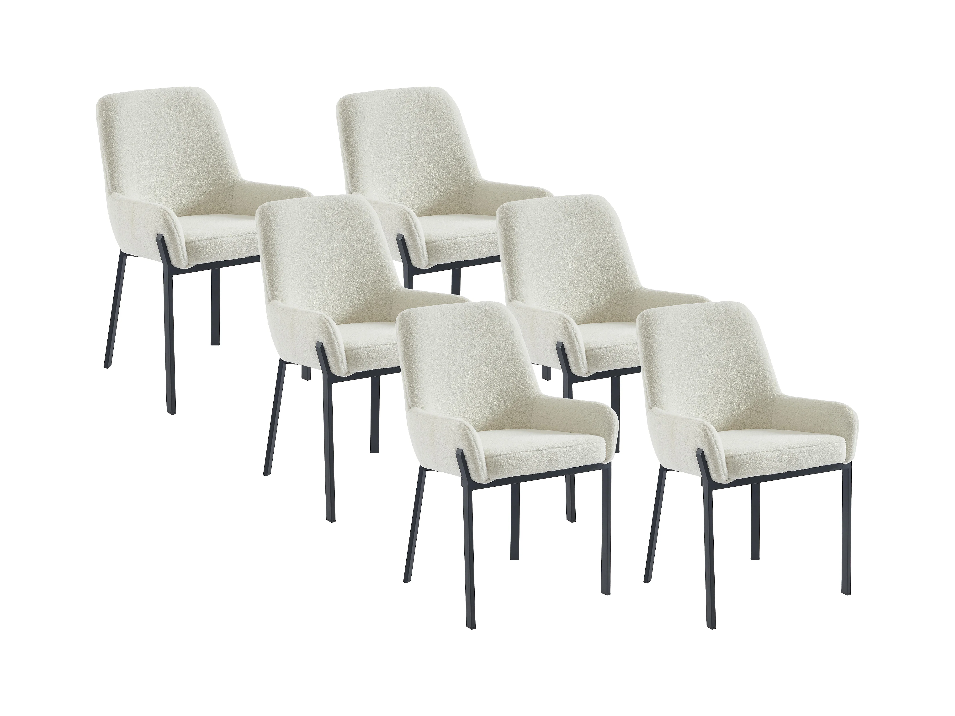 Lot de 6 chaises avec accoudoirs en tissu bouclette et métal - Blanc - CAROLONA de Pascal MORABITO