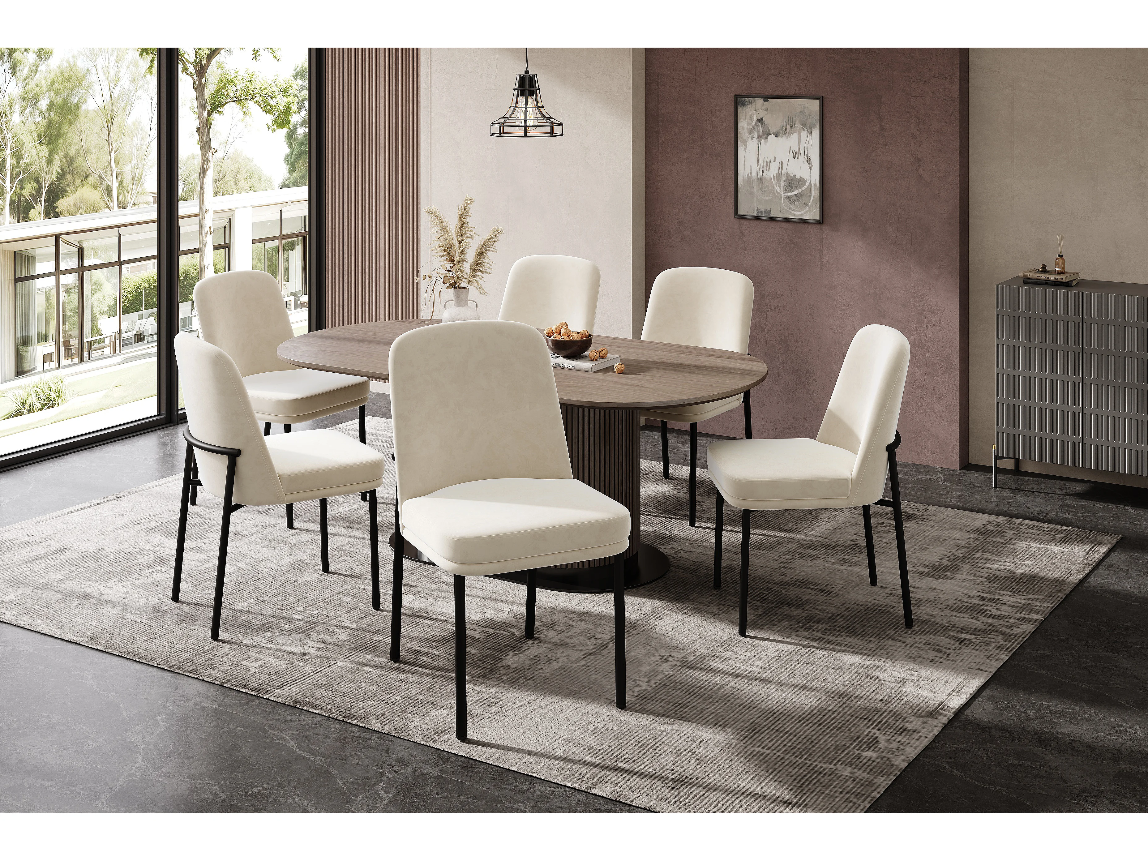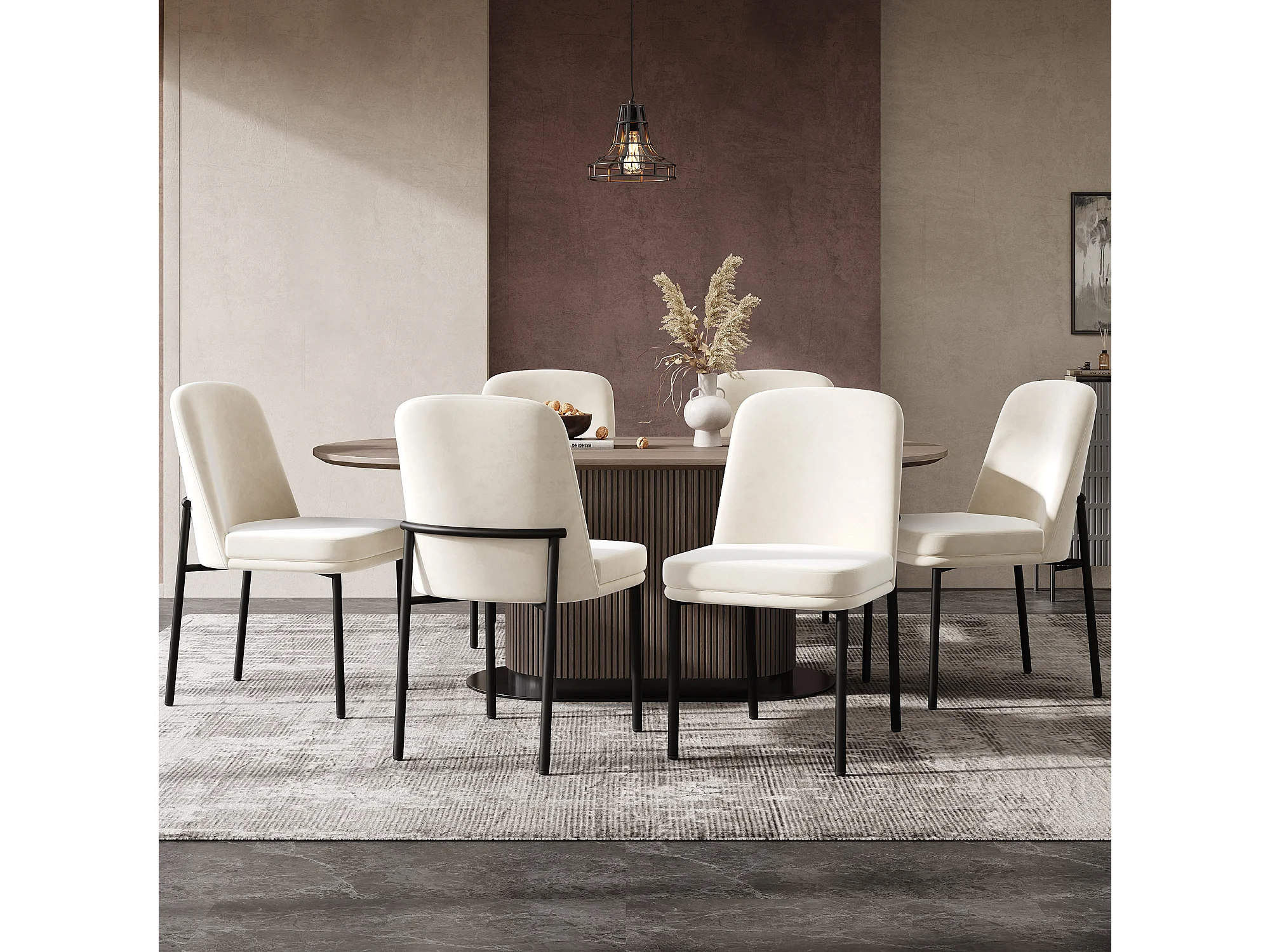Lot de 6 chaises avec pieds en métal noir - Velours beige